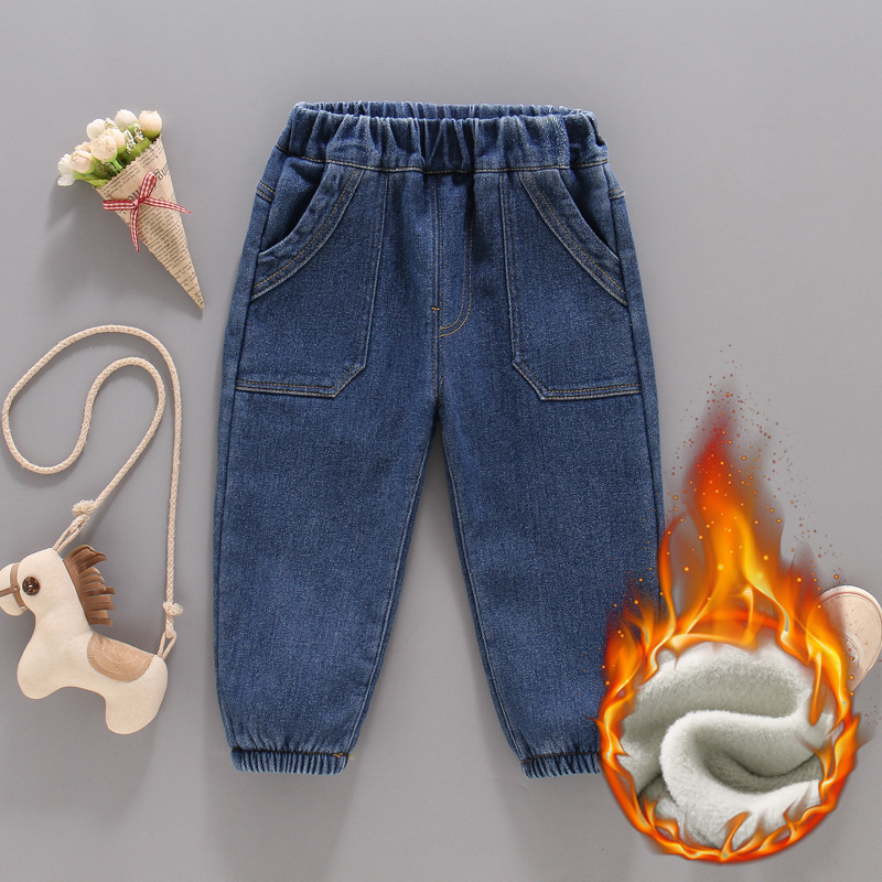 어린이 청바지 기모 소년 따뜻한 바지 바지 겨울 착용 남자의 아기 다리 바지 큰 포켓 바지 도매스토어 가기