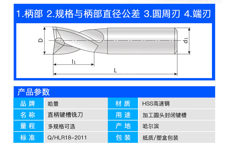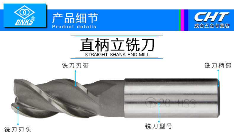 하얼빈 HSS 고속 스틸 엔드 밀 밀링 커터 화이트 스틸 키웨이 3 면 직선 생크 밀링 커터 양날 4-20m