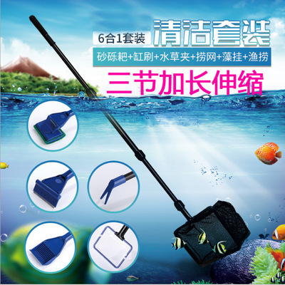 수족관 수족관 청소 도구 어항 청소 브러시 어항 브러시 긴 손잡이 텔레스코픽 6-in-One 청소 패키지스토어 가기