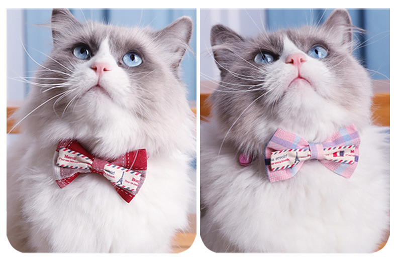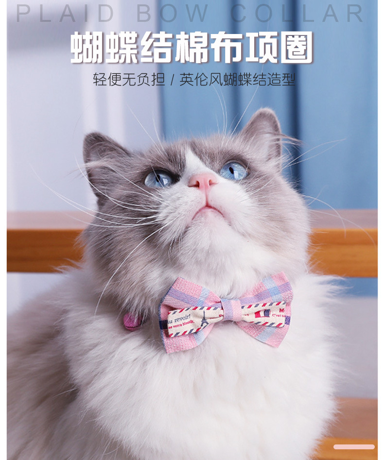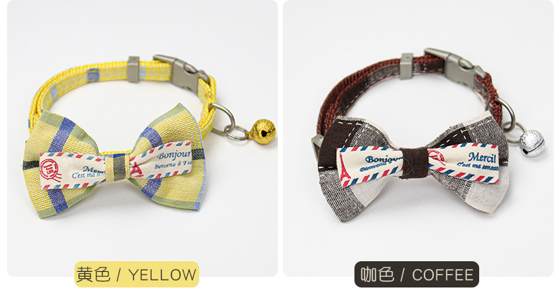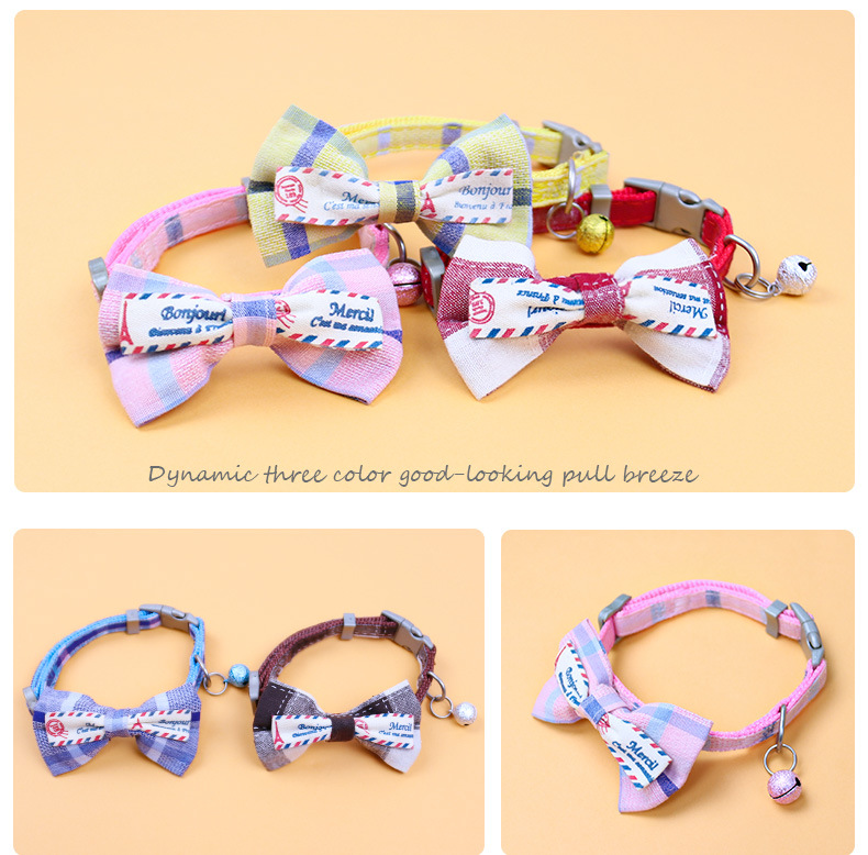 아마존 격자 무늬 활 고양이 벨 칼라 고양이 목걸이 개 귀여운 칼라 목걸이 애완 동물 보석