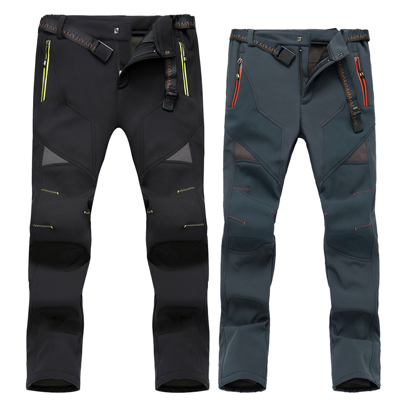 남성용 겨울 기모 두꺼운 방수 방풍 플러스 사이즈 슬림핏 따뜻한 양털 소프트 쉘 여성용 야외 등산 바지