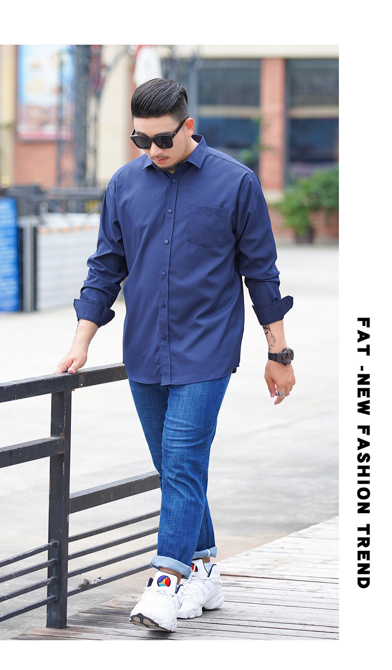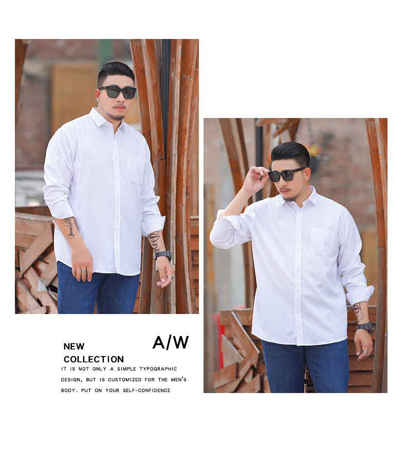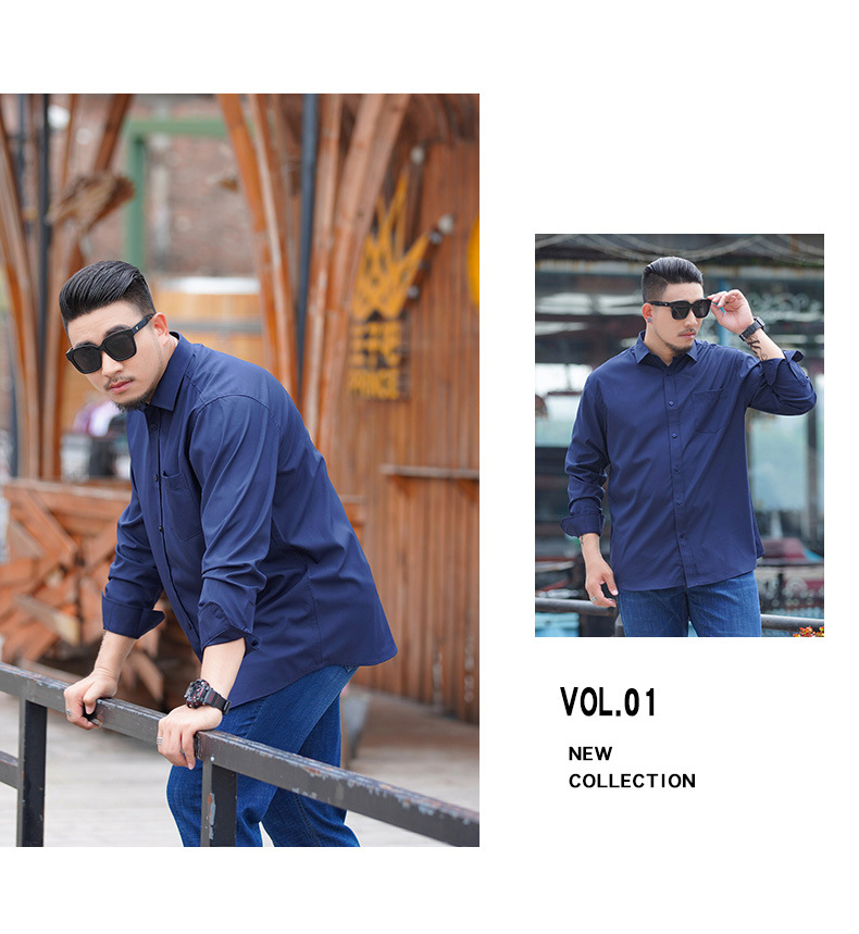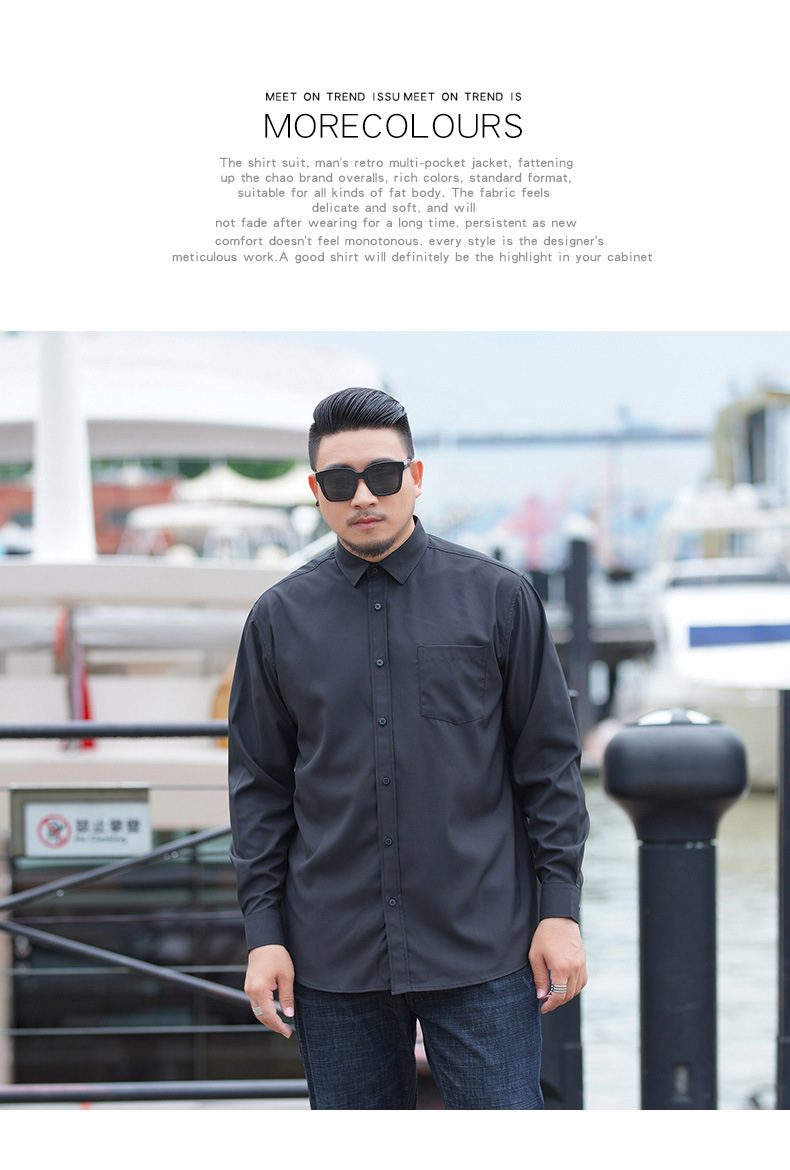 첫 번째 늑대 플러스 사이즈 남성 캐주얼 셔츠 남자의 비즈니스 느슨한 플러스 큰 단색 긴 소매 셔츠 봄과 가을