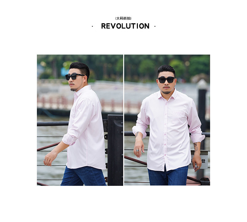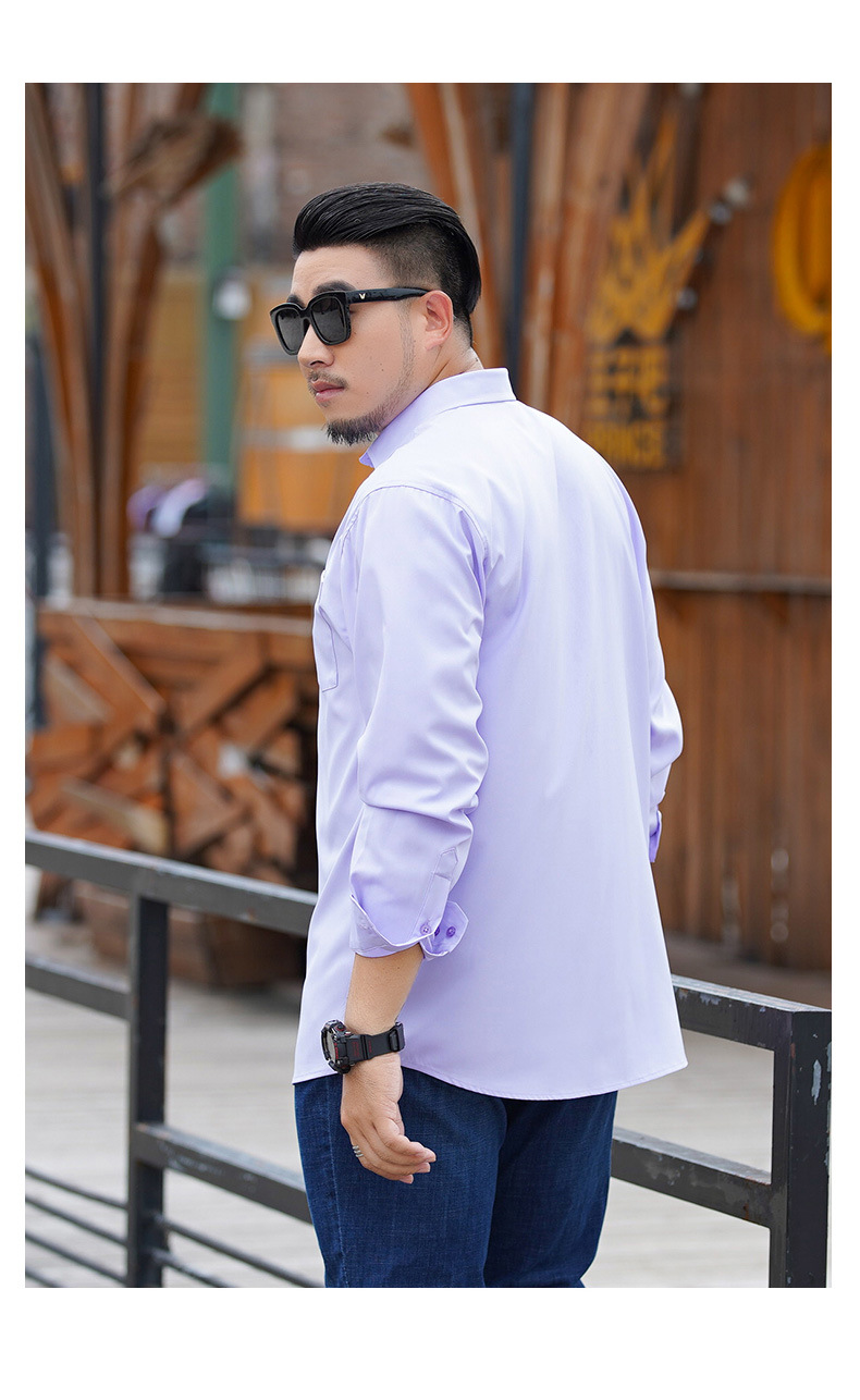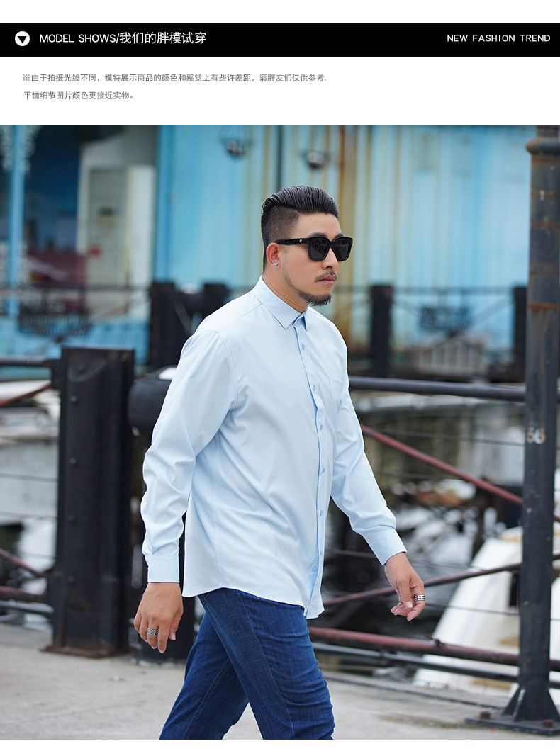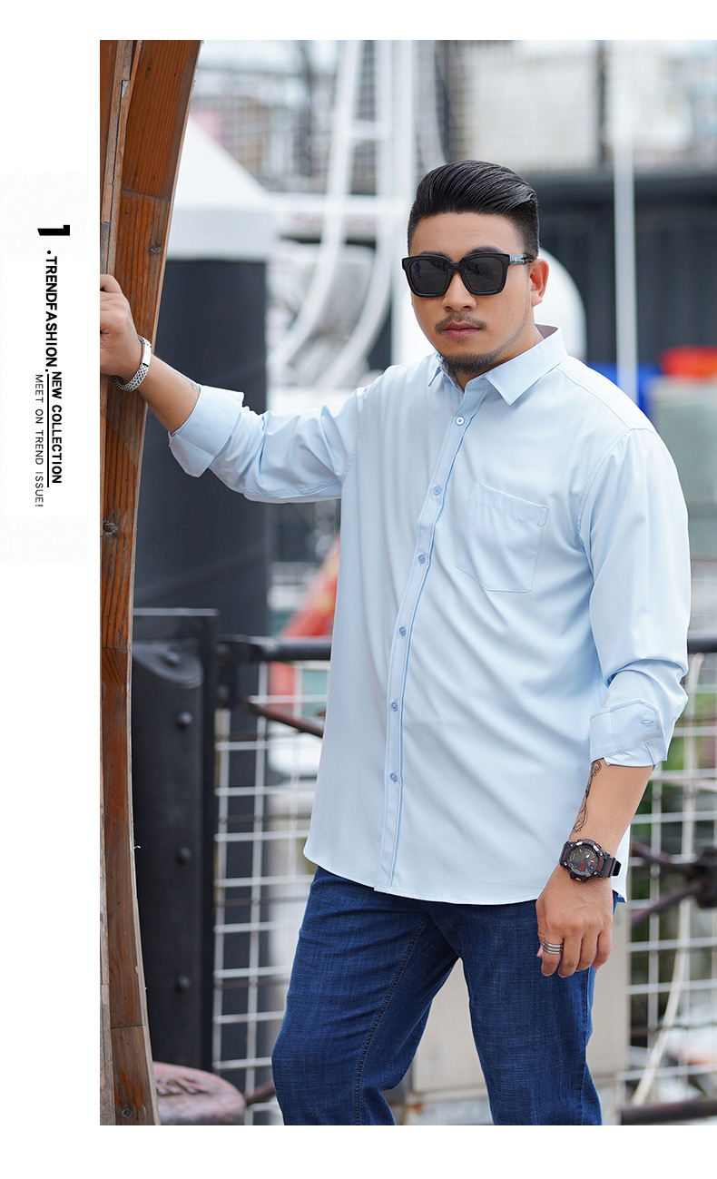 첫 번째 늑대 플러스 사이즈 남성 캐주얼 셔츠 남자의 비즈니스 느슨한 플러스 큰 단색 긴 소매 셔츠 봄과 가을