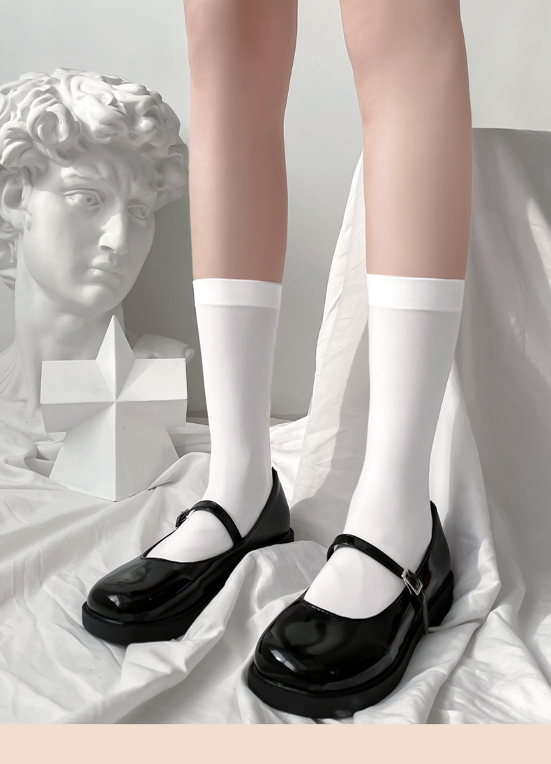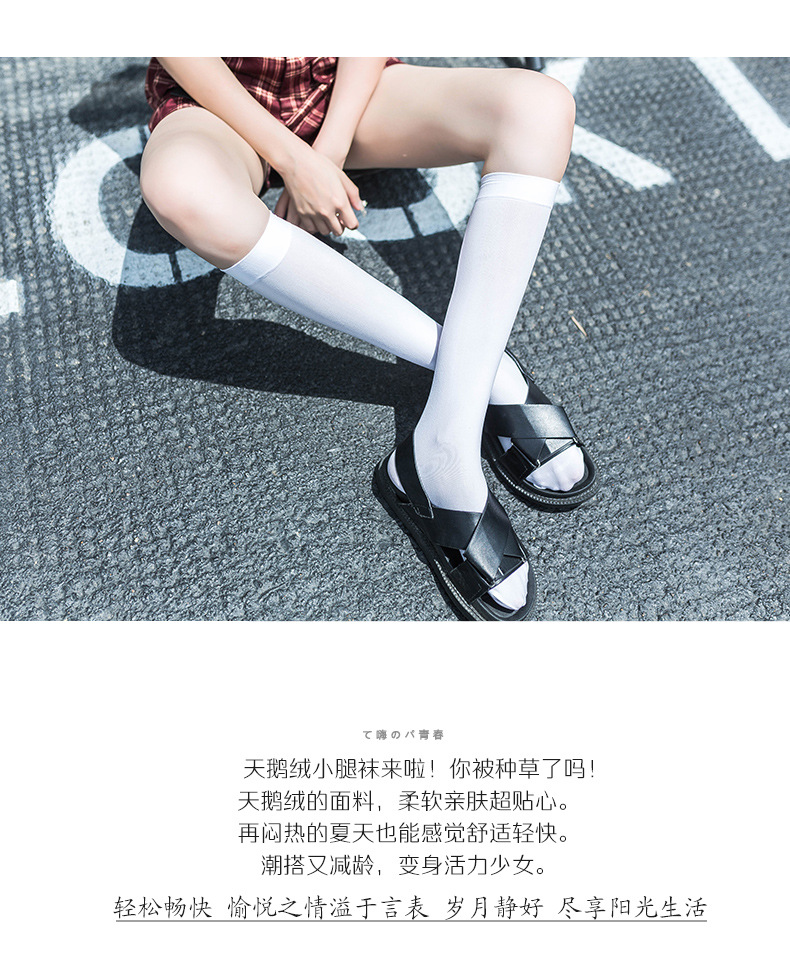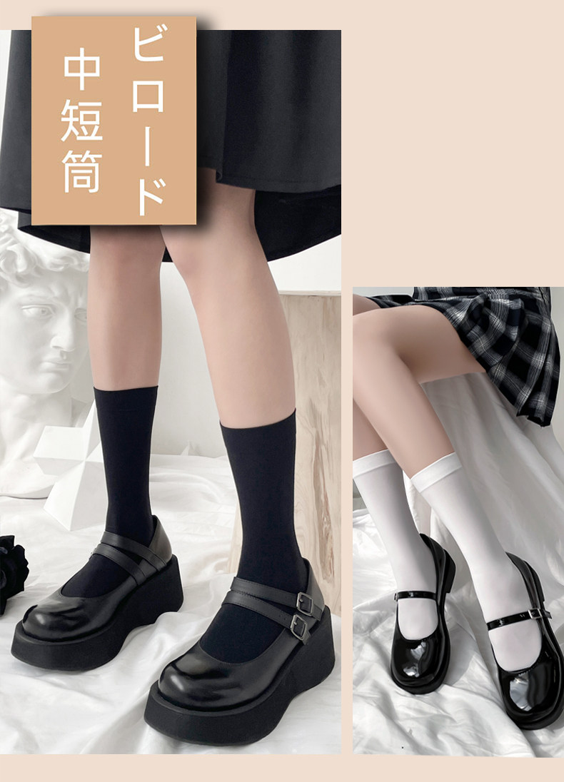 黑色小腿袜子女半高筒街头百搭纯色日系夏季超薄款jk白色中长筒袜