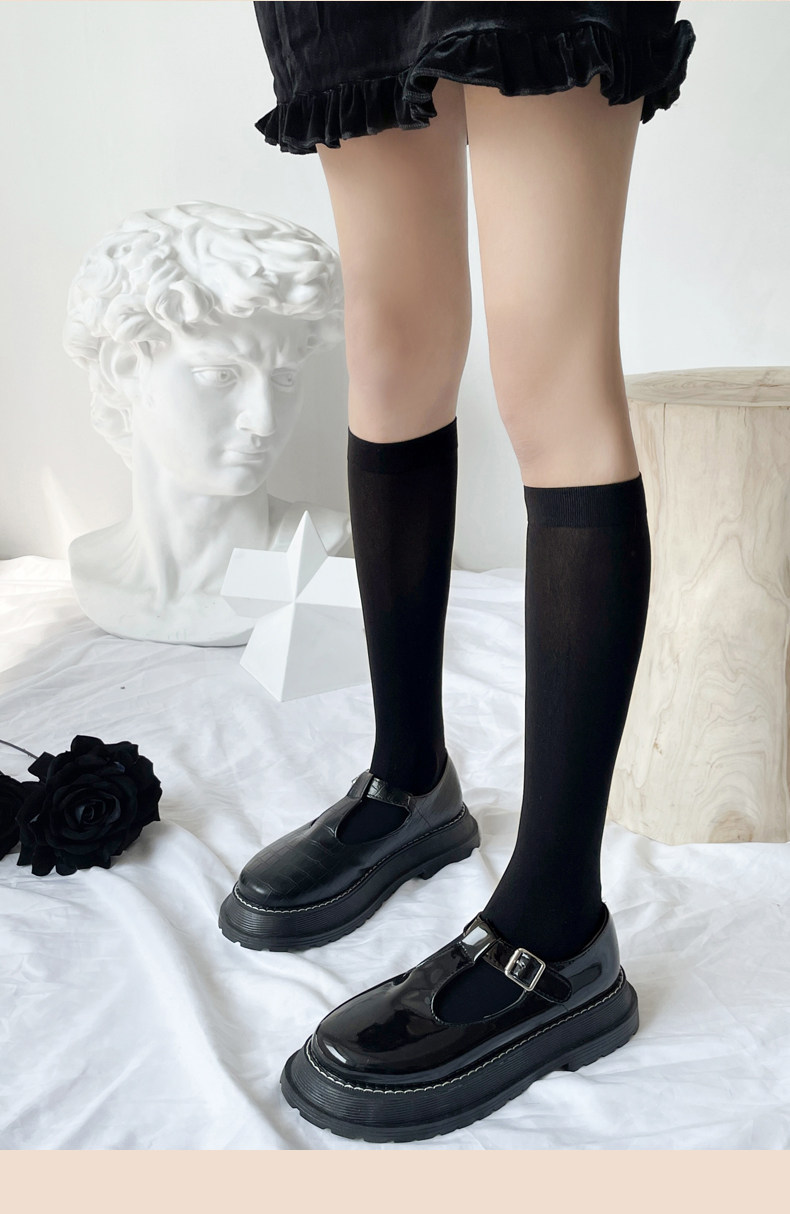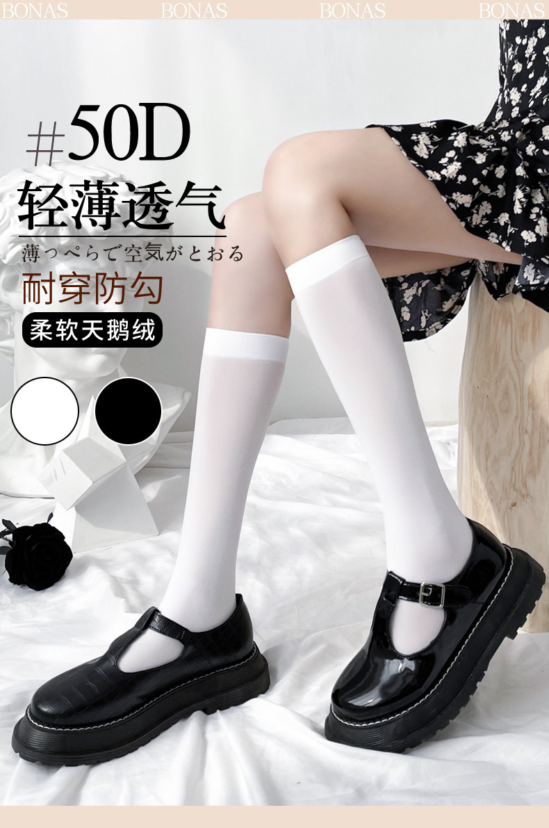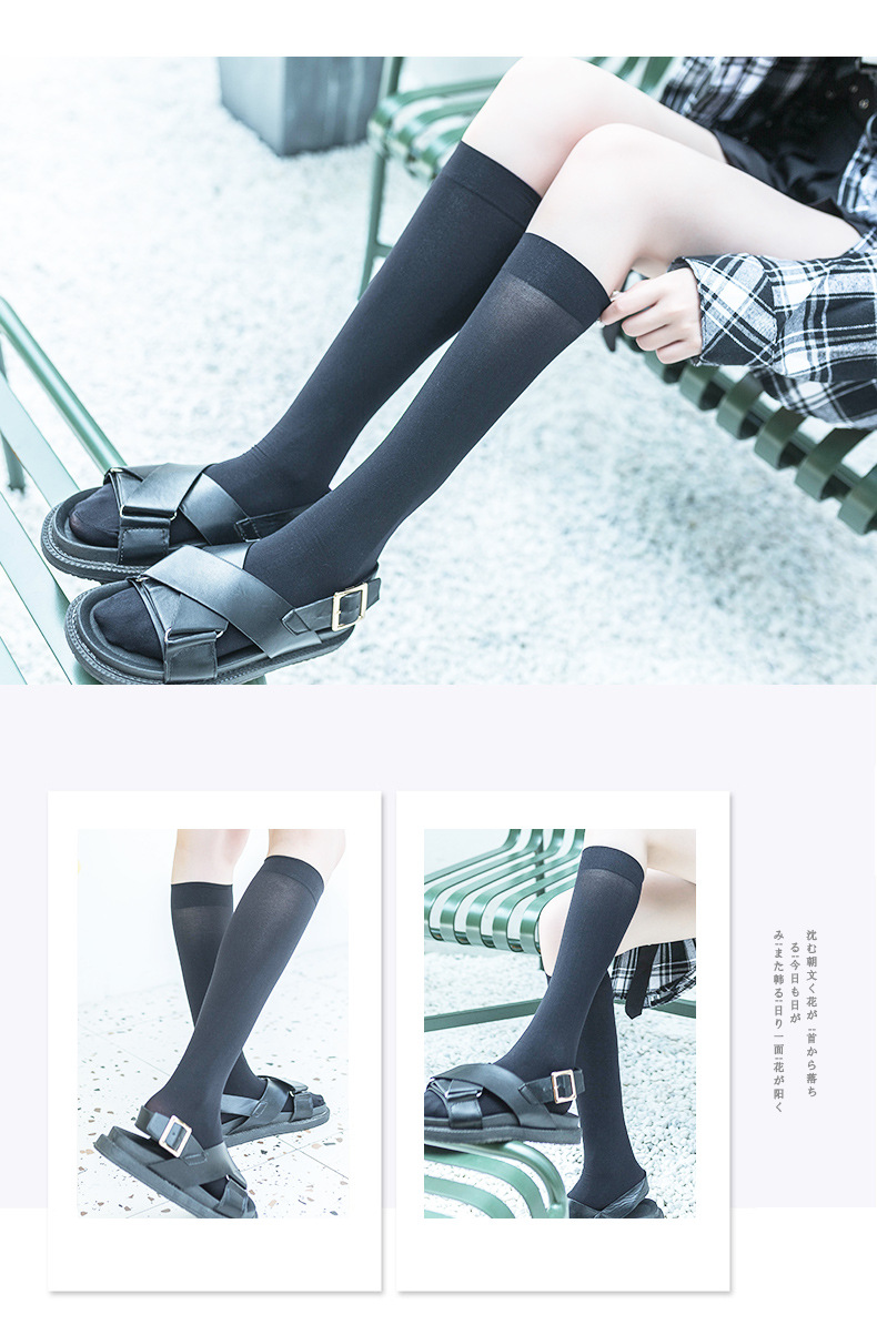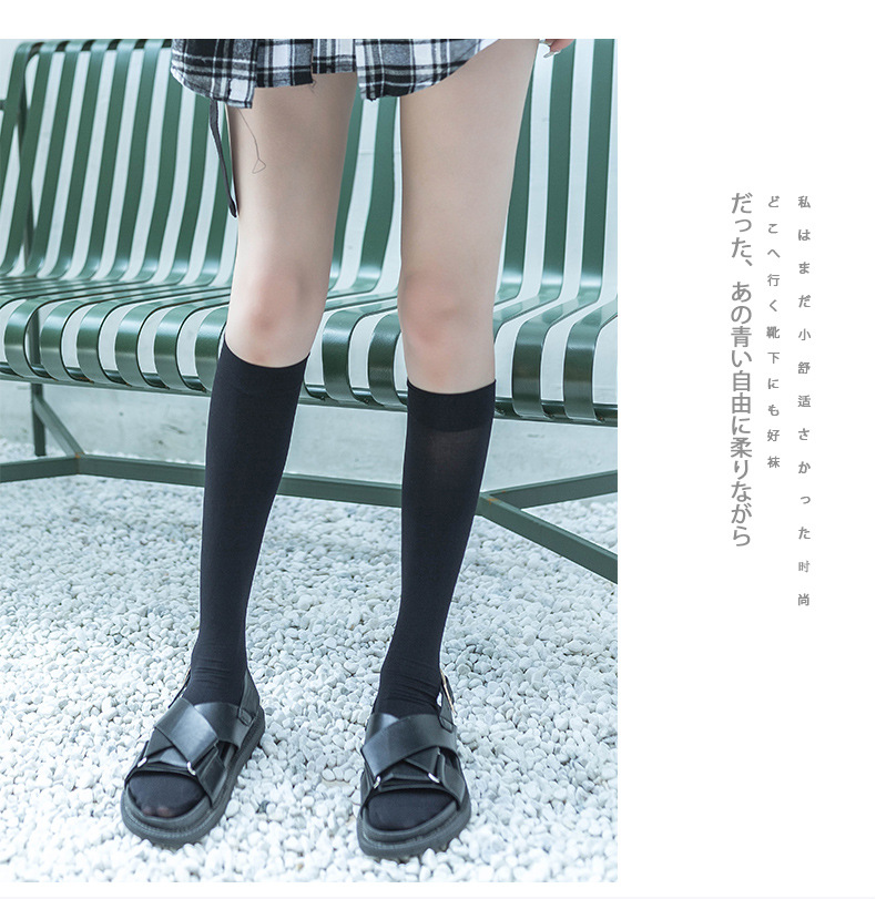 Jk 양말 여성용 중간 길이 양말 봄과 가을 무릎 높이 얇은 다리 종아리 양말 검은 스타킹 여름 얇은스토어 가기