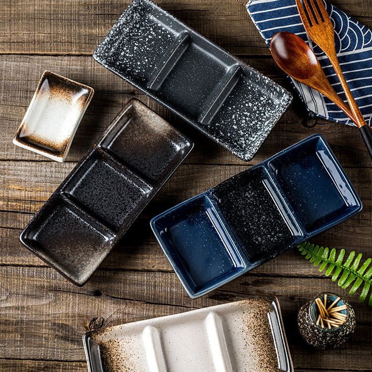 8寸日韩式 三格芥末碟 调味碟牙签筒 陶瓷餐具碟酱油调味长方碟