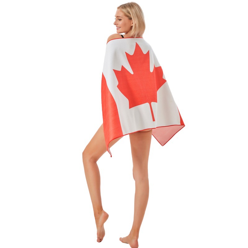스팟 공급 비치 타월 마이크로 화이버 캐나다 국기 목욕 타월 전체 바닥 인쇄 27X54logo250GSM