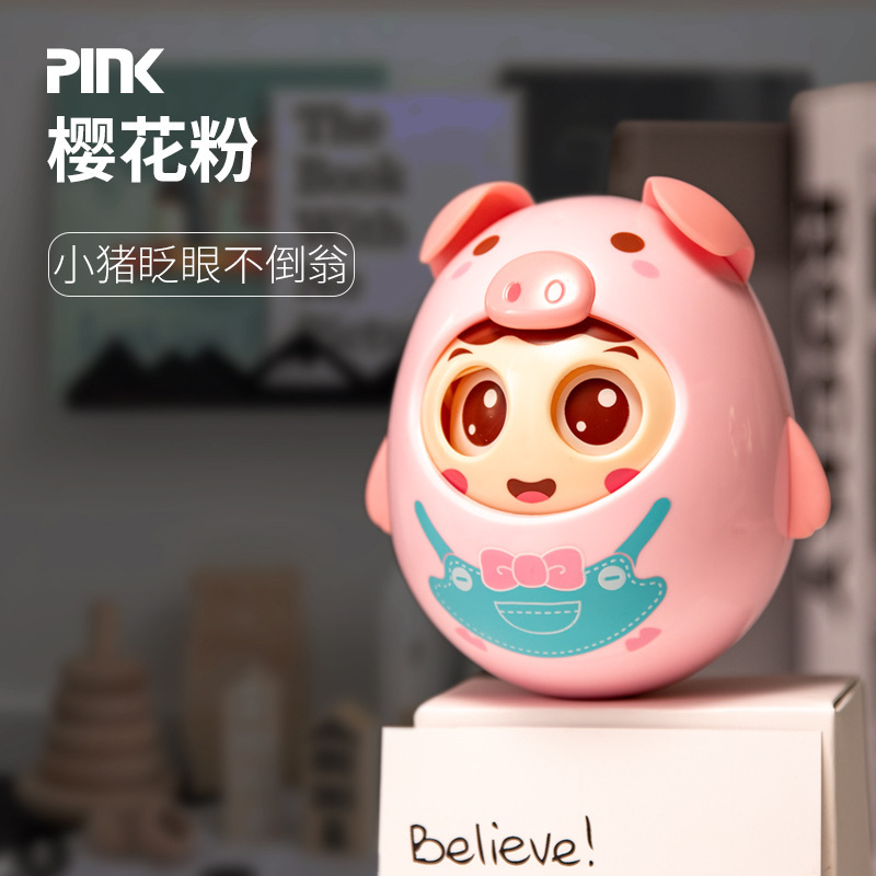 아기 손 딸랑이 깜박임 텀블러 어린이 교육 장난감 아기 돼지 이빨 내장 벨 텀블러스토어 가기
