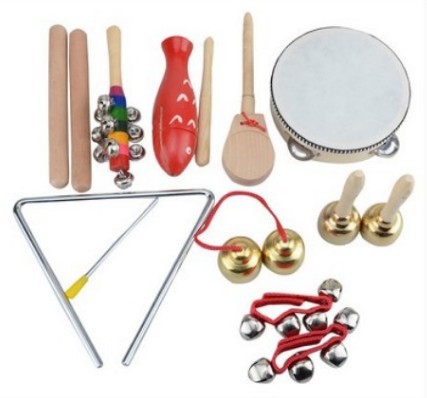 세트 오르프 타악기 사운드 보드 벨 탬버린 삼각형 개구리 치는 배럴 더블 링 배럴