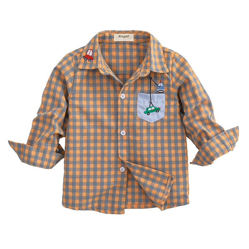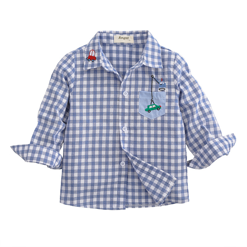 봄과 가을 새로운 아동 의류 소년 긴팔 격자 무늬 셔츠 어린이 만화 면화 긴 셔츠 어린 소년스토어 가기