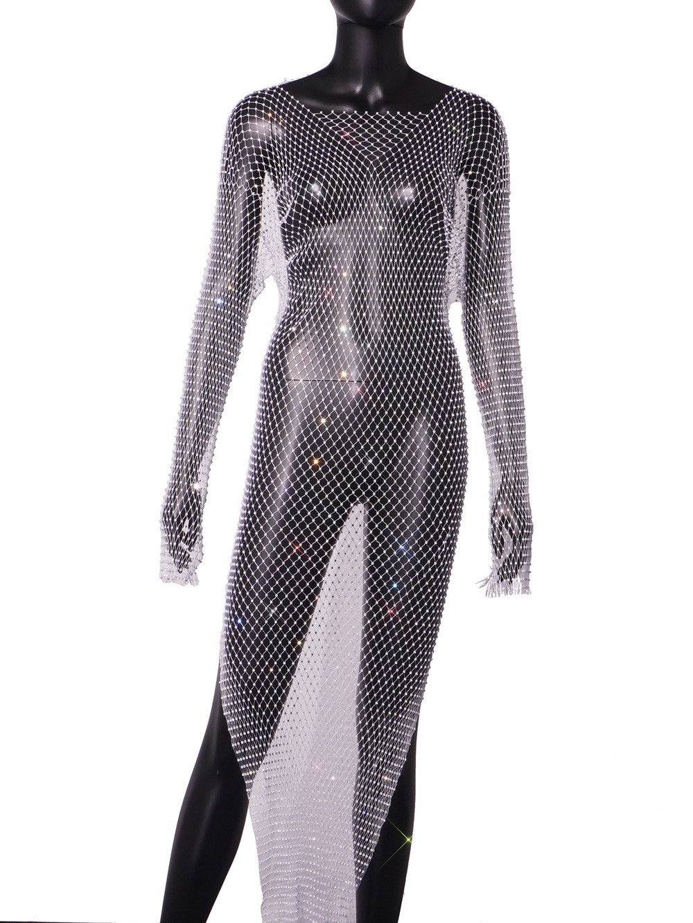 크로스-국경 유럽과 미국 2023 여름 원피스 낚시 그물 라인 석 긴 원피스 섹시한 나이트 클럽 향신료 소녀 관점 원피스 메쉬 원피스