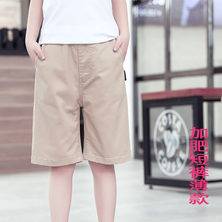 Zhongda 남아 캐주얼 스트레치 반바지 어린이 탄성 허리 어린이 크롭 팬츠 초대형 플러스 뚱뚱한 여름 얇은 머리