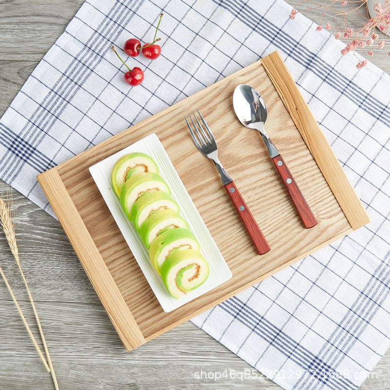 일본식 사선형 원목색 트레이 직사각형 나무 차 트레이 과일 트레이 식사 트레이 호텔 레스토랑 호텔 동일 스타일 도매