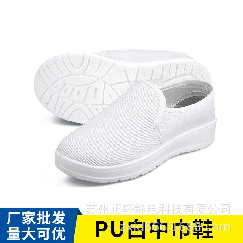 정전기 방지 매체 pu 화이트 캔버스 화이트 블루 먼지없는 클린 작업 신발 보호 노동 보호 신발 편안한 두꺼운 부드러운 바닥 도매