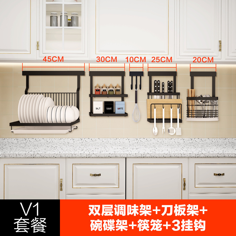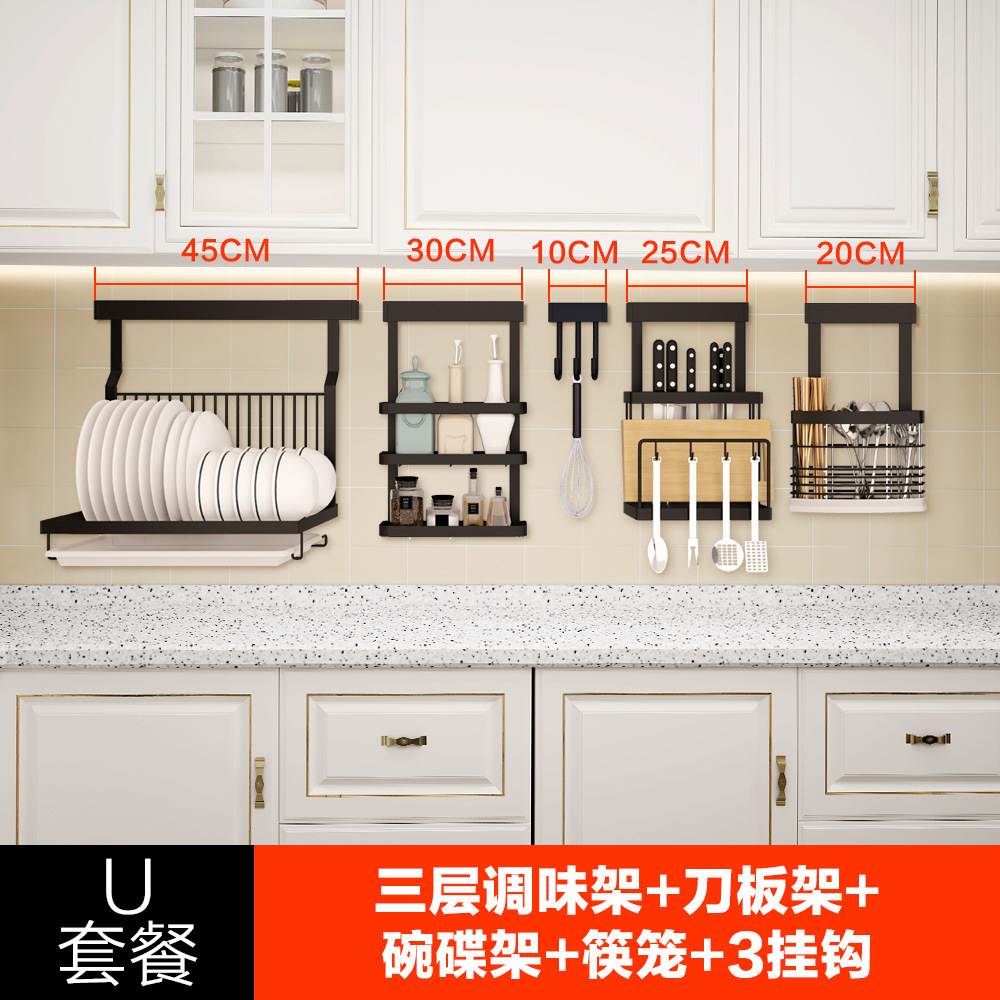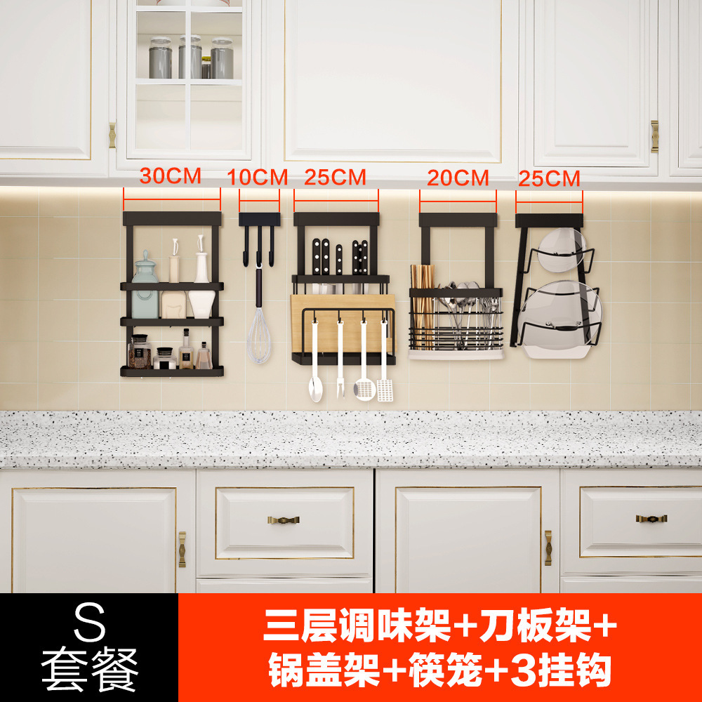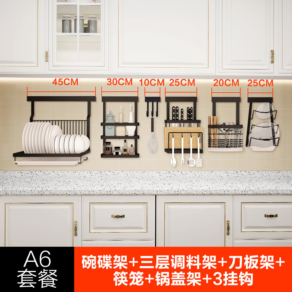 • A6 세트 식사 (접시 선반 + 3 단 조미료 랙 + 나이프 랙 + 젓가락 케이지 + 냄비 커버 랙)
