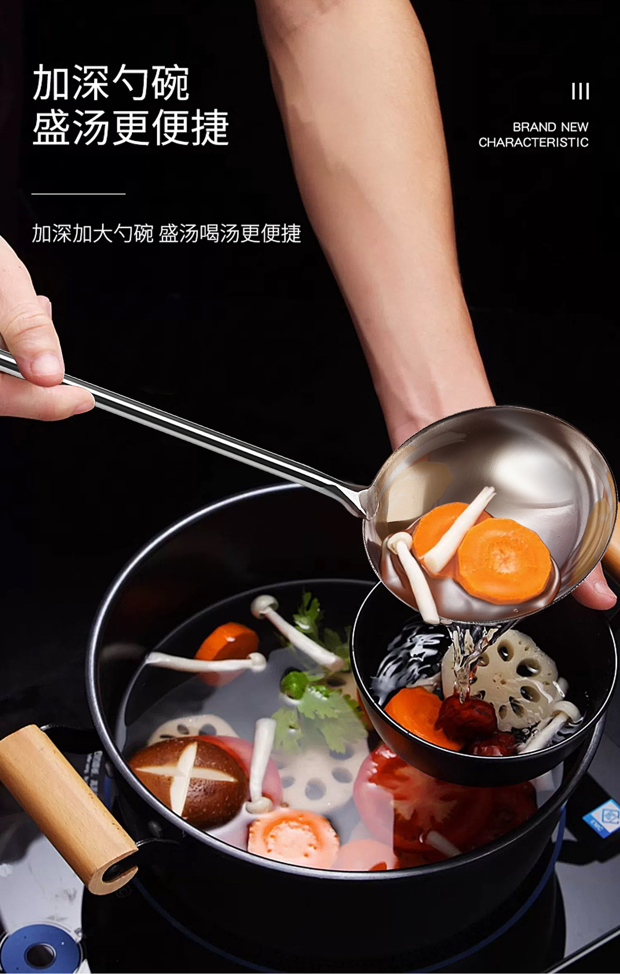 스테인리스 볶음주걱, 두꺼운 뒷면이 있는 주걱, 요리용 숟가락, 주방용 국자, 식당용 국자, 화상 방지, 두꺼운 재질