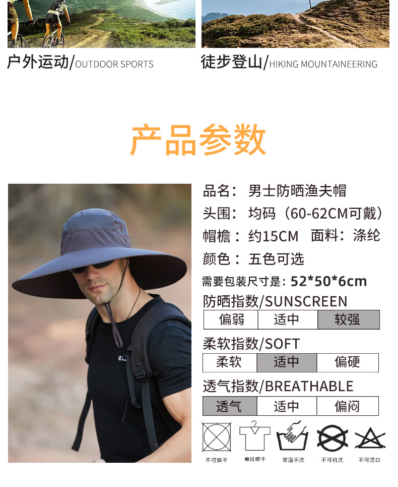 9020 유럽과 미국의 대형 남성 어부 모자 국경 방수 야외 태양 모자 태양 보호 등산 모자 등산 모자