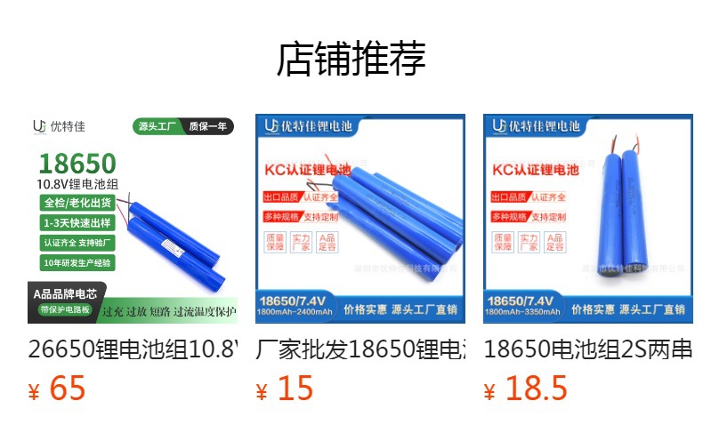 KC 인증 18650 리튬 배터리 팩 7.4V 단어 조합 2200mAh 1800mAh 전기 물병 배터리스토어 가기