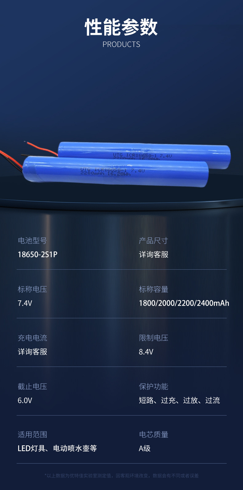 KC 인증 18650 리튬 배터리 팩 7.4V 단어 조합 2200mAh 1800mAh 전기 물병 배터리
