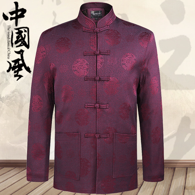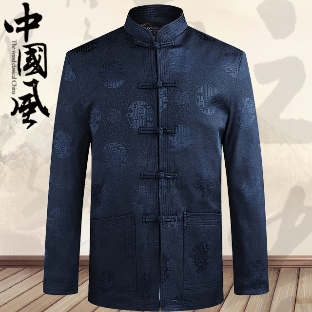 봄과 가을 중년 및 노인 당나라 세트 남성 자켓 긴 소매 재킷 아빠 캐주얼 재킷 할아버지 중국 튜닉 원피스 특별 가격