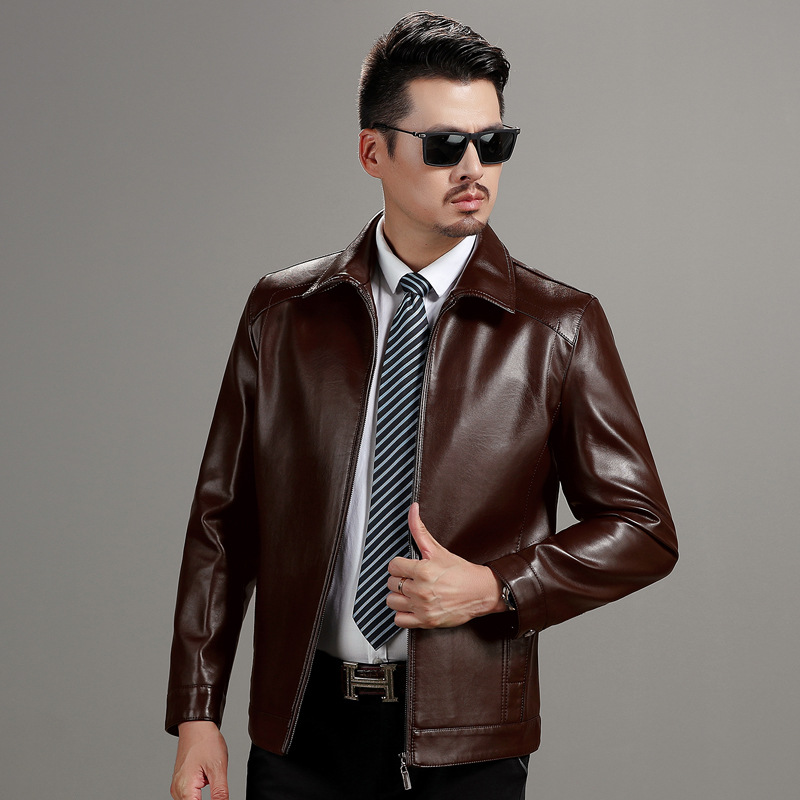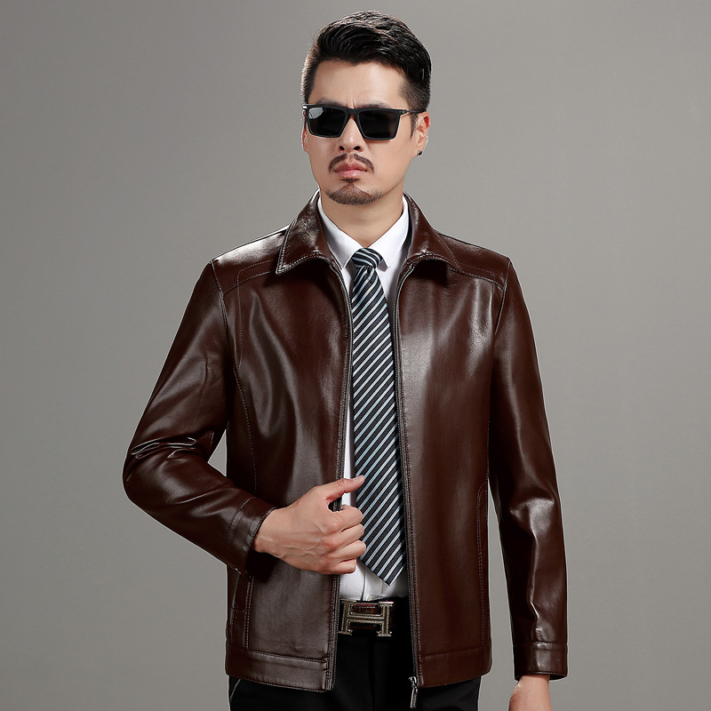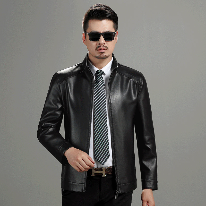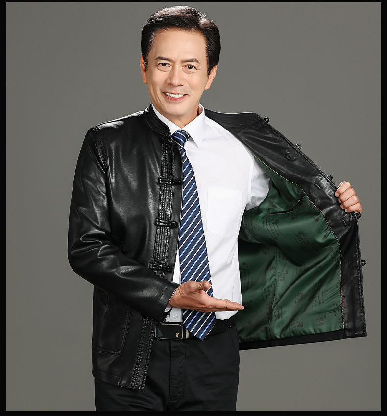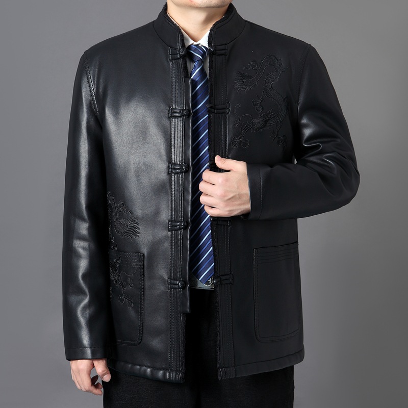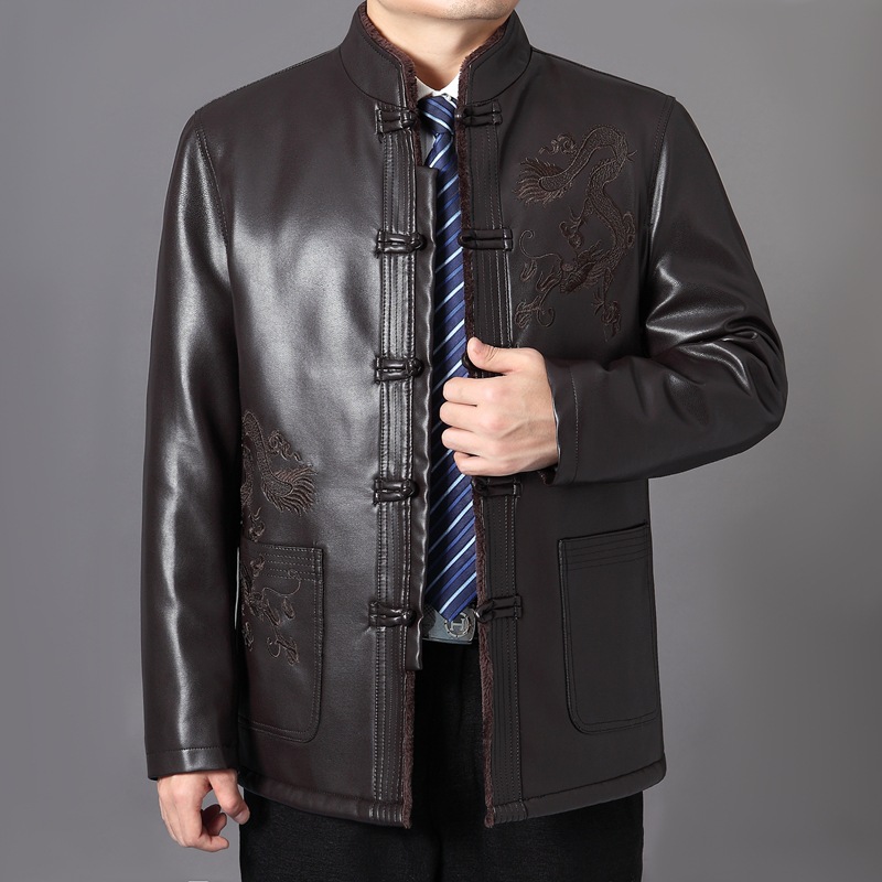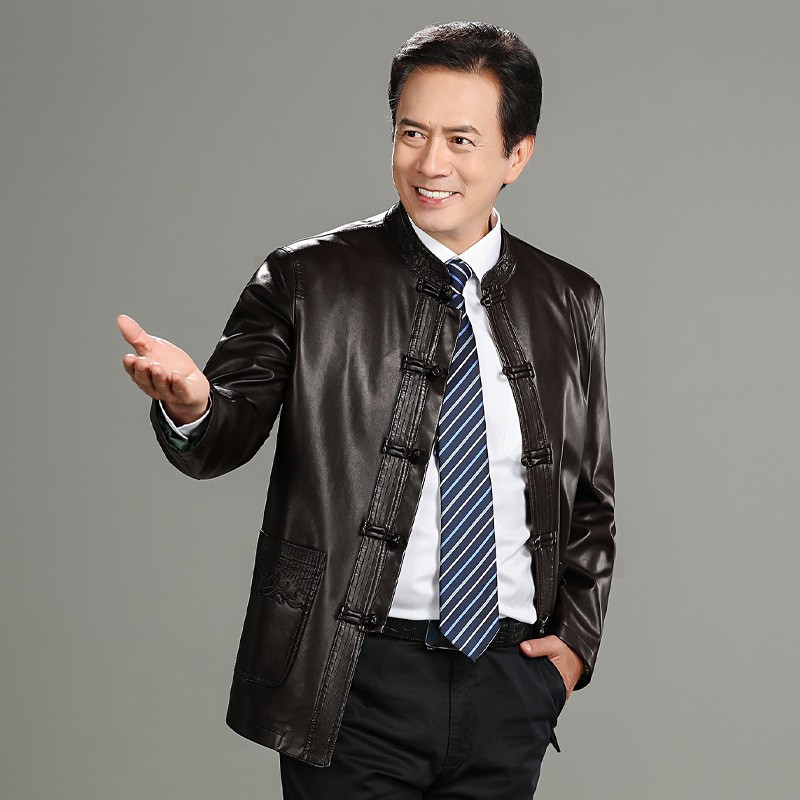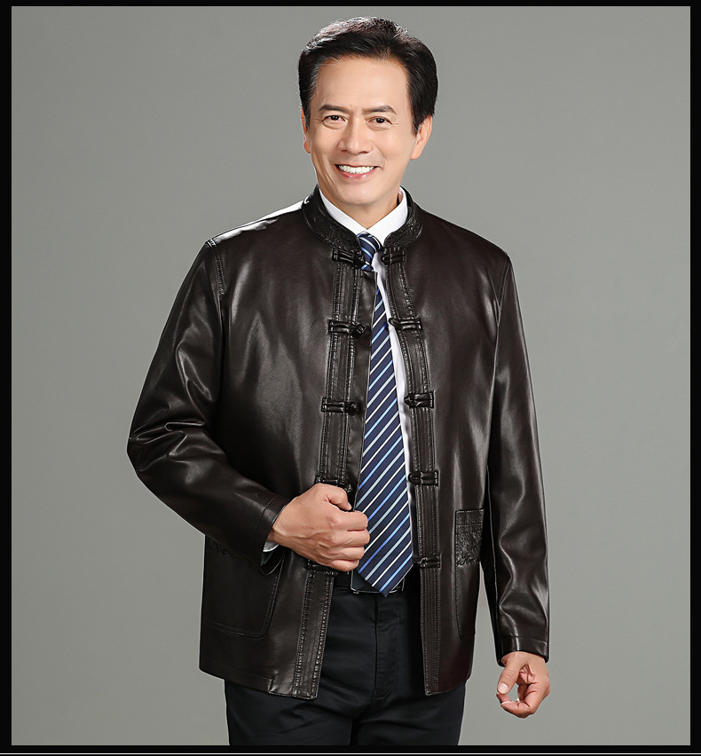 가을 겨울 남성용 다색 중년 및 노년층 심플 캐주얼 두꺼운 가죽 재킷 남성용 중국풍 당복 가죽 의류스토어 가기