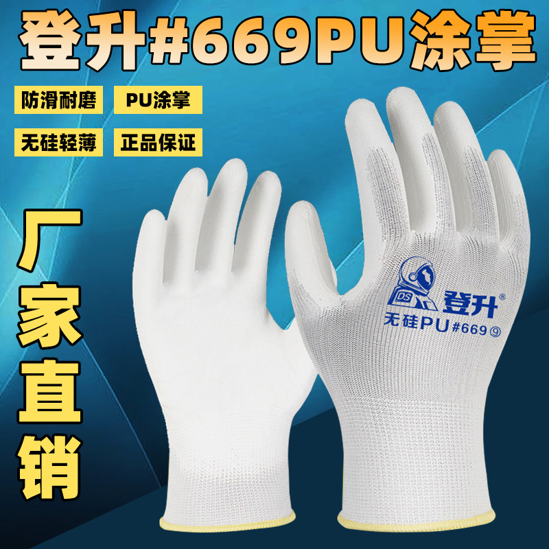 Dengsheng #669 나일론 PU 핑거 코팅 팜 장갑 남성과 여성을 위한 얇은 통기성 내마모성 미끄럼 방지 정전기 방지 노동 보호스토어 가기
