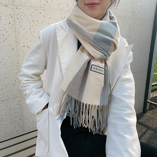 仿羊绒围巾女冬季韩国格子披肩两用简约秋冬百搭加厚保暖围脖批发