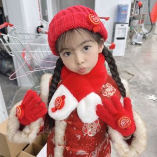 儿童围巾加厚红毛绒仿兔毛围脖男女宝宝秋冬新年款围巾批发