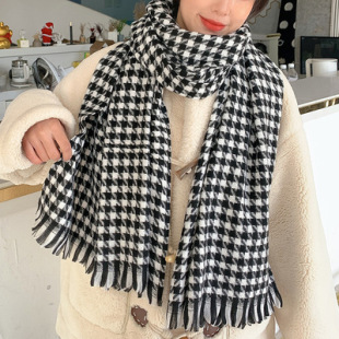千鸟格围巾女冬季2023新款格子围巾 仿羊绒保暖流苏披肩加厚围脖