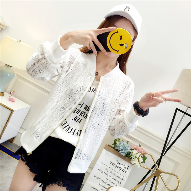 한국식 긴팔 짧은 아우터 얇은 레이스 중공 슬림핏 가디건 자외선 차단제 의류 여성용 올매치 스몰 숄 재킷