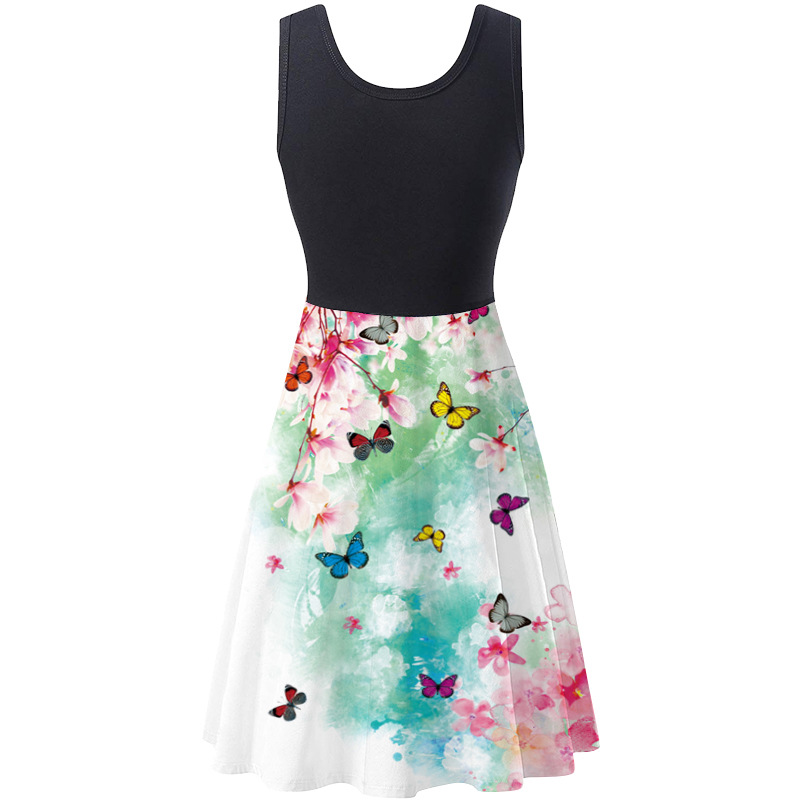 재고 유럽과 미국의 새로운 소원 아마존 여름 민소매 라운드 넥 여성 디지털 인쇄 원피스 여성스토어 가기