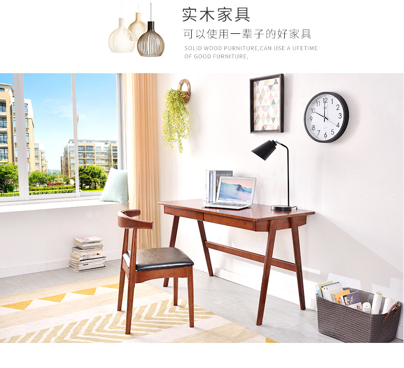 컴퓨터 책상, 심플하고 모던한 가정용 책상, 북유럽 스타일 원목 책상, 책장이 결합된 사무용 책상, 책상