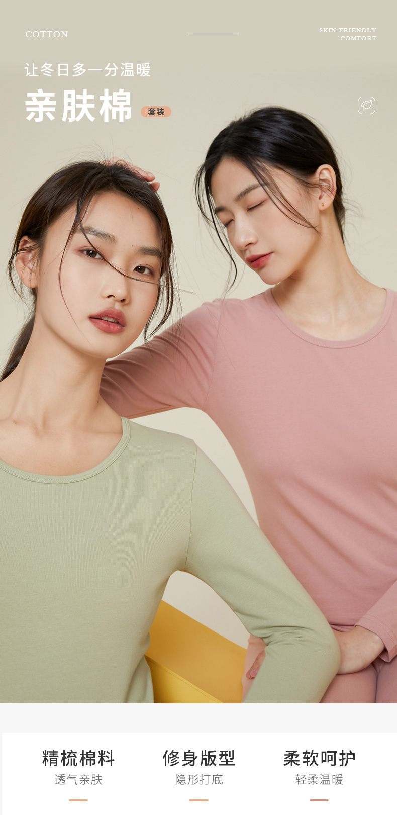 여성용 순면 보온 속옷, 몸에 꼭 맞는 가을 옷과 긴 바지 세트, 순면 학생 얇은 보온 속옷스토어 가기
