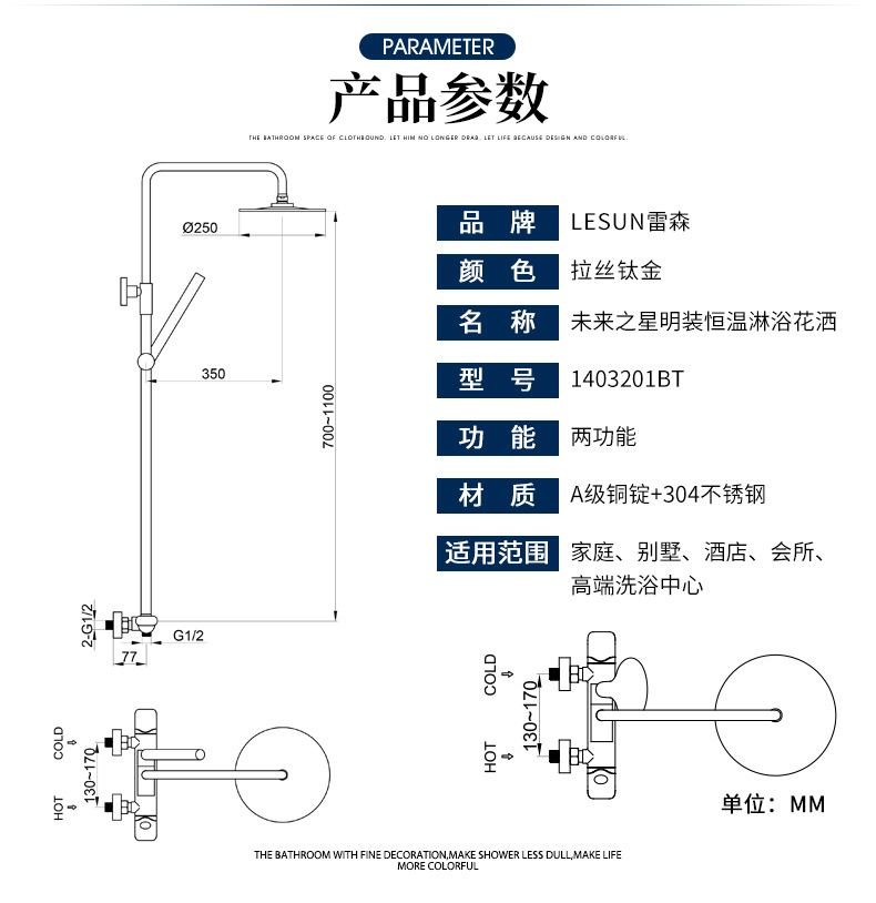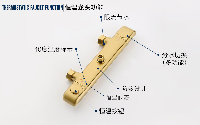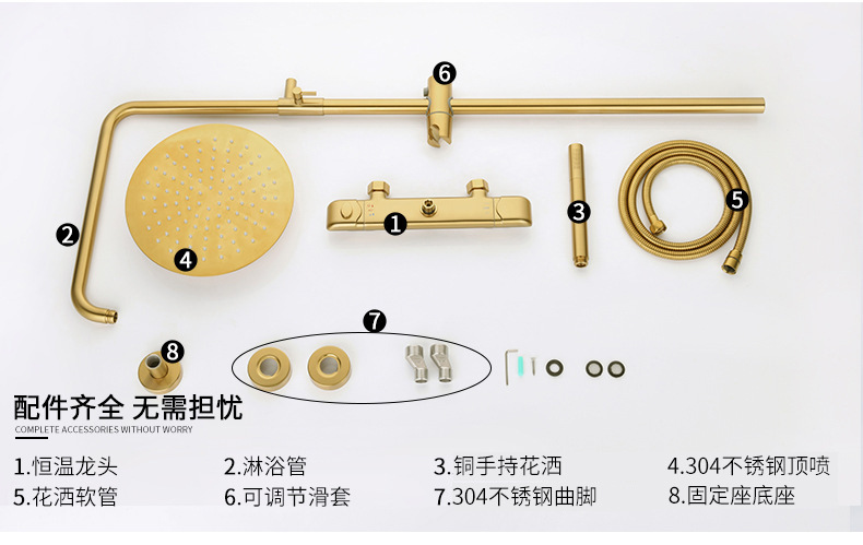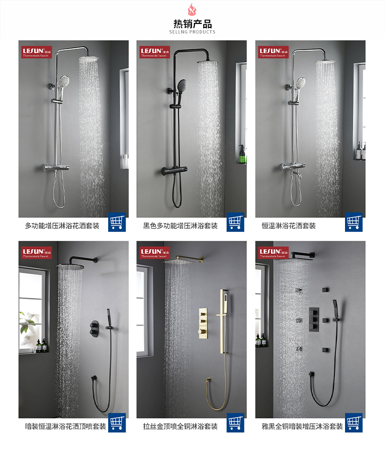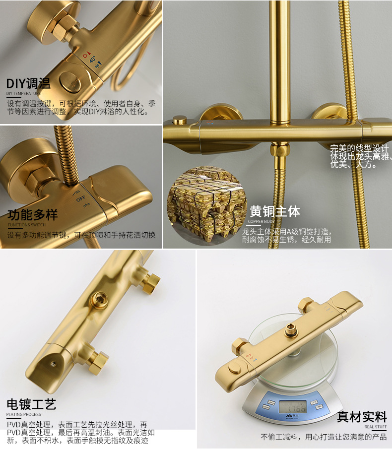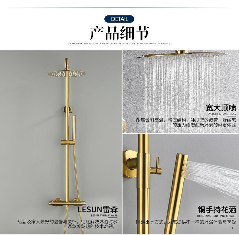 레이센 온도조절 벽걸이형 샤워 온도조절 욕실 수도꼭지 샤워기 세트 골드 모던 심플 샤워
