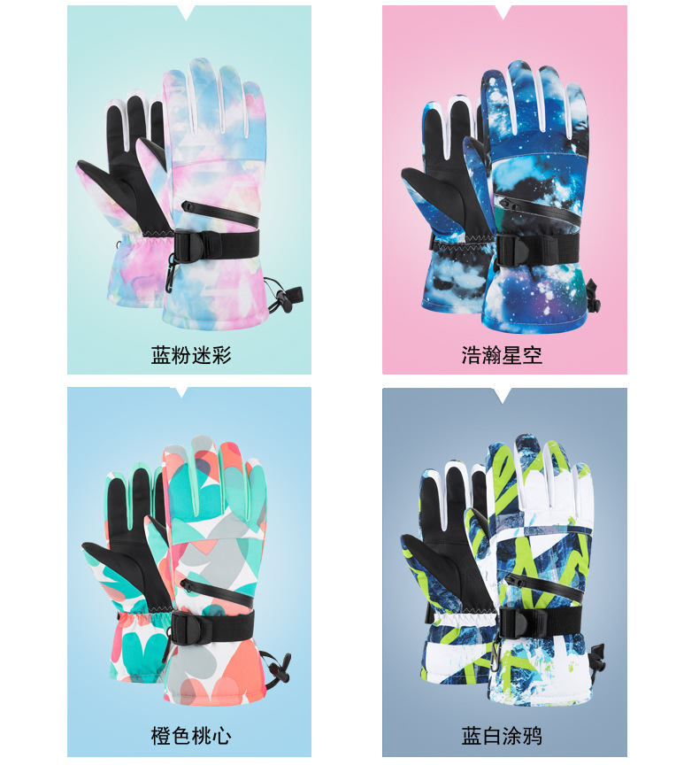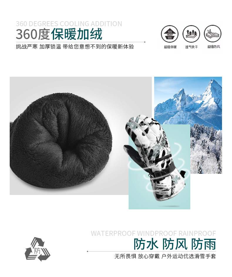 남성과 여성을위한 스키 장갑 겨울 따뜻한 두꺼운 성인 야외 방수 승마 크로스 보더 터치 스크린 스키 장갑
