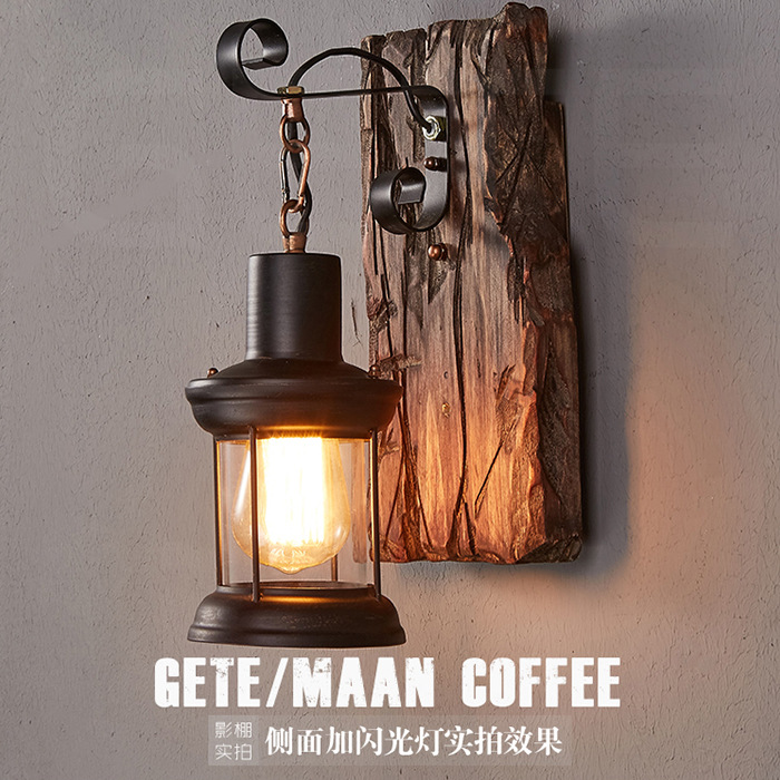 빈티지 쿨 크리에이 티브 LED 나무 벽 램프 레스토랑 카페 바 통로 복도 램프 오래 된 빈티지 벽 램프스토어 가기