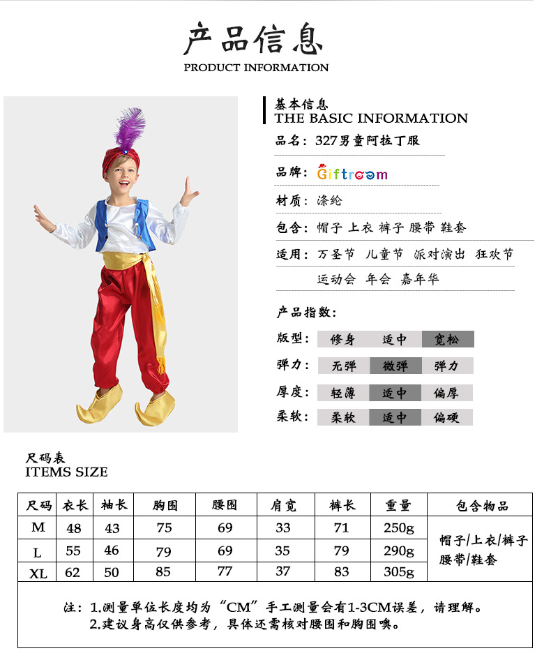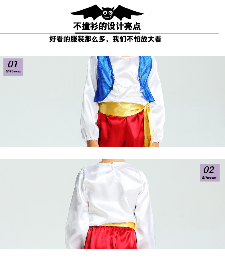 카니발 파티 의상 중동 아랍 소년 알라딘 매직 램프 드라마 무대 공연 코스프레 의상