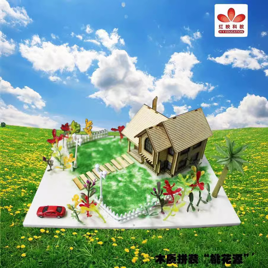 복숭아 꽃 정원 나무 조립 건물 모델 전국 대회 특별 모래 테이블 장면 DIY 오두막 인기 과학 표지