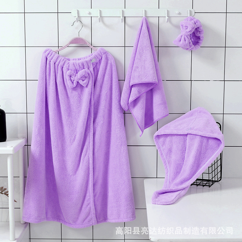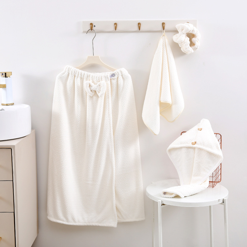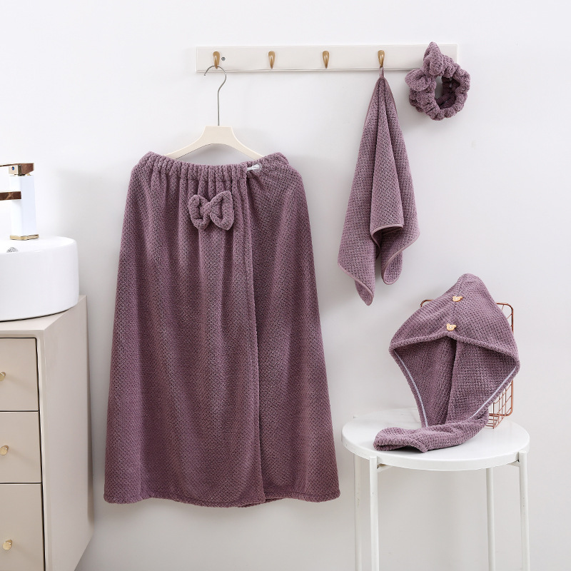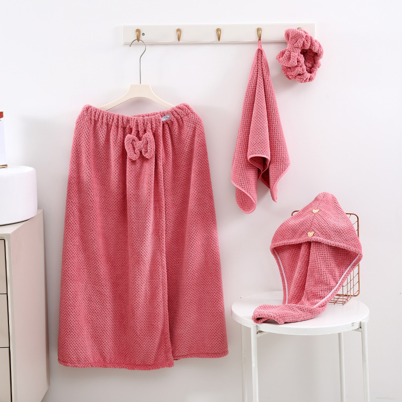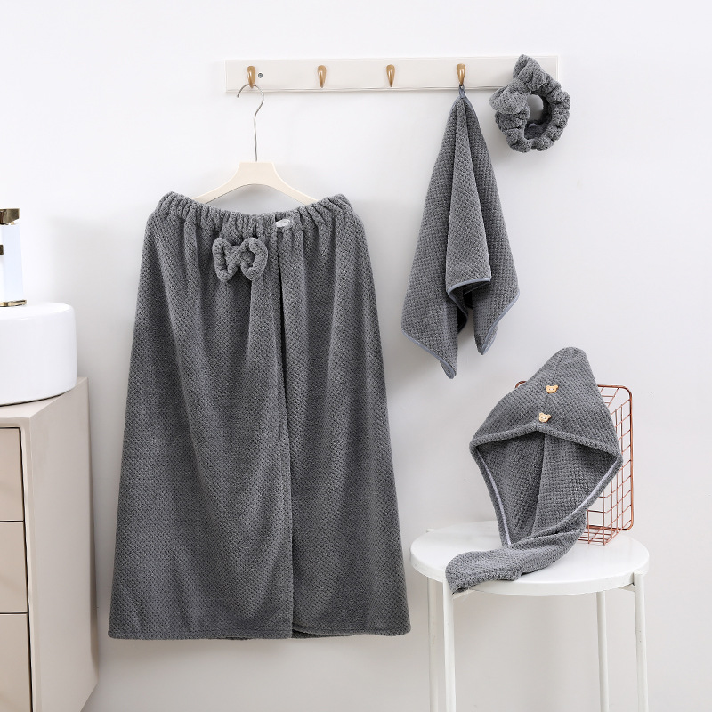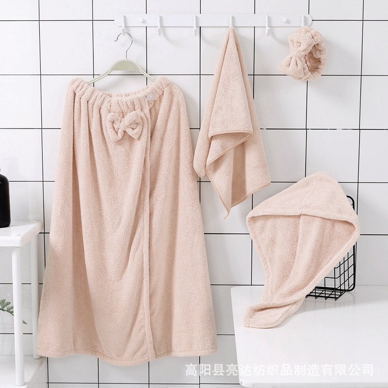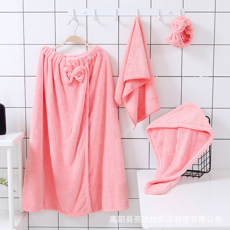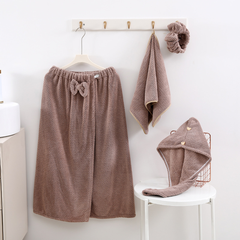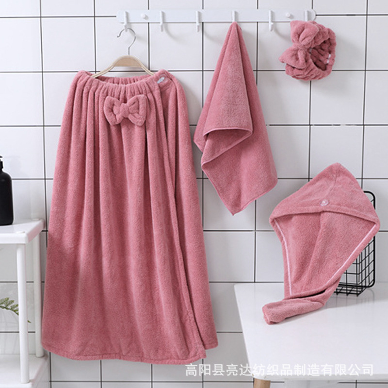목욕 타월 끈이없는 여성 착용 및 랩 산호 양털 목욕 스커트 3 종 세트 가정용 흡수성 소프트 대형 타월 제조 업체 도매