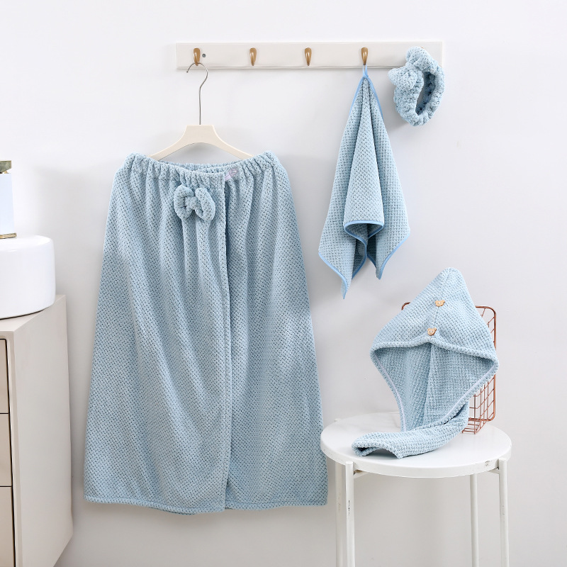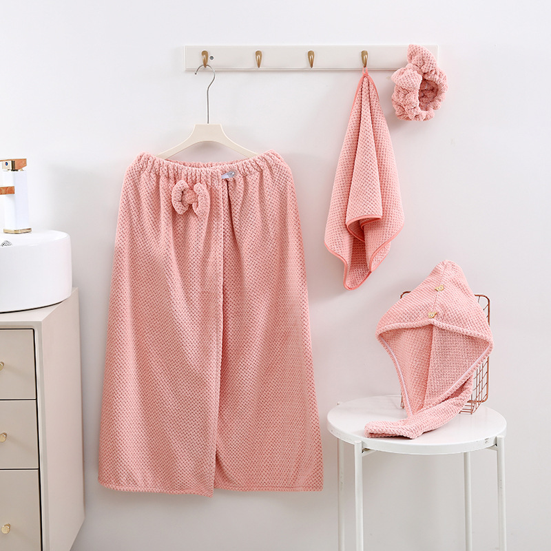 목욕 타월 끈이없는 여성 착용 및 랩 산호 양털 목욕 스커트 3 종 세트 가정용 흡수성 소프트 대형 타월 제조 업체 도매스토어 가기