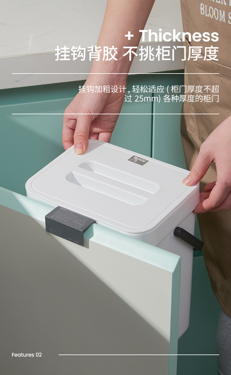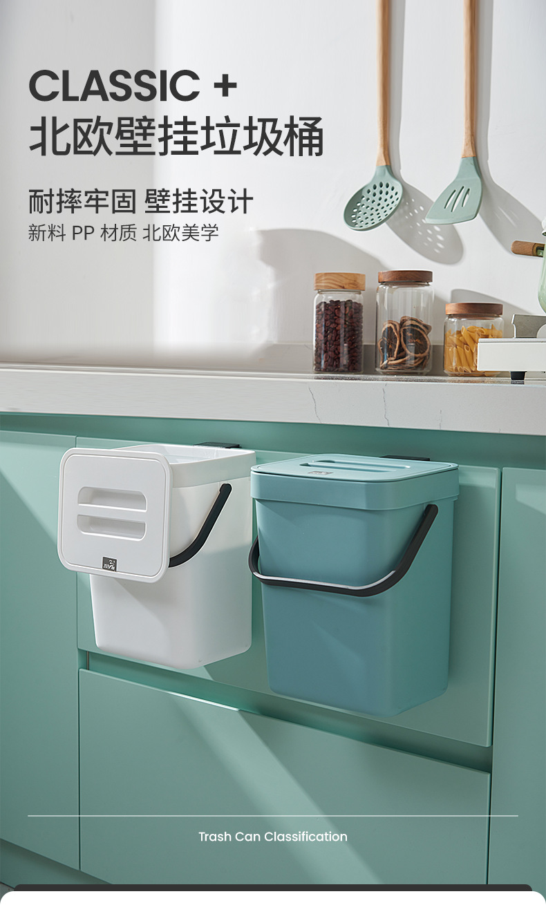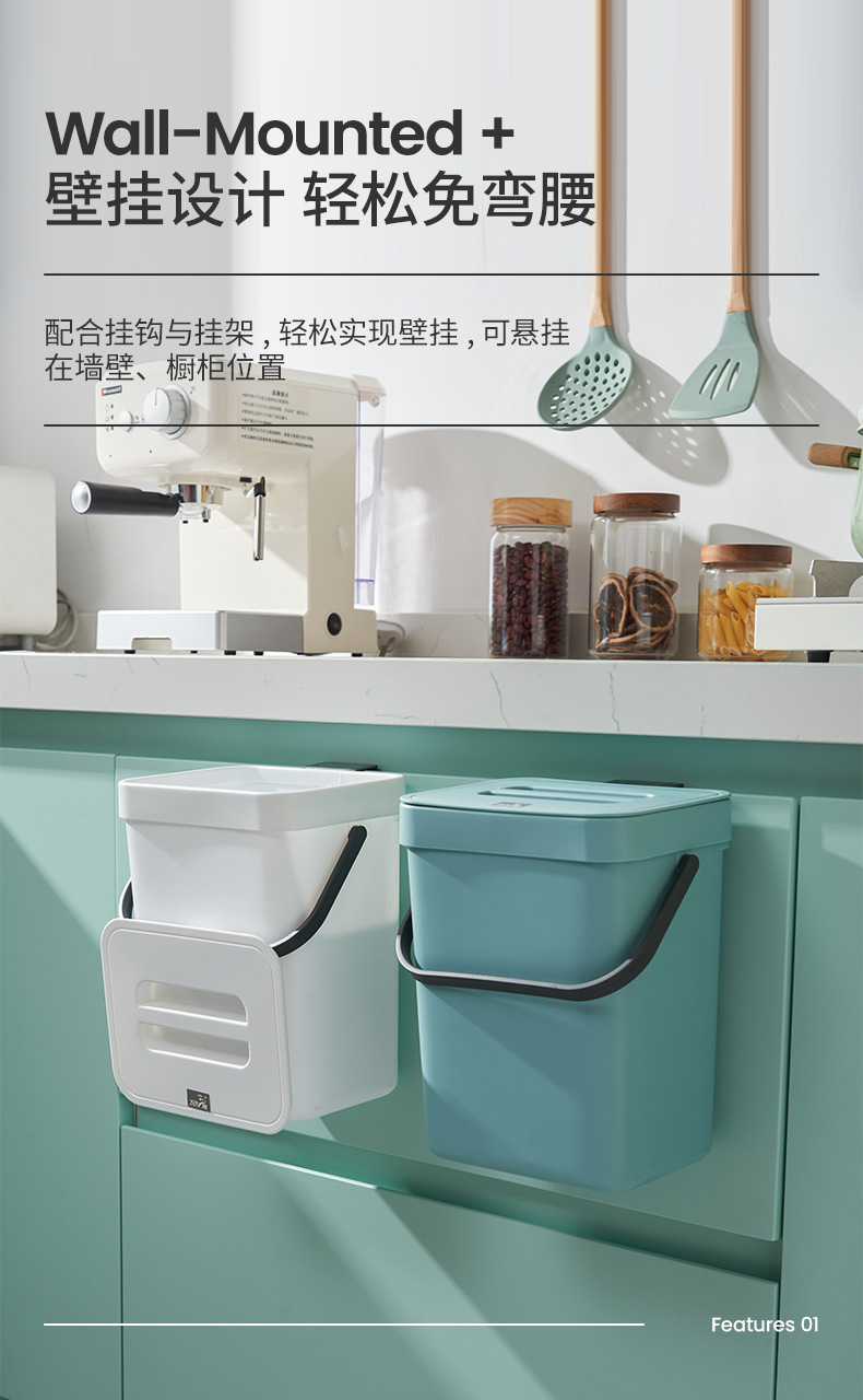 Shuangyi 주방 쓰레기통, 구멍을 뚫을 필요 없음, 뚜껑이 있는 대형 쓰레기통, 가정용 손잡이가 있는 냄새 방지 쓰레기통