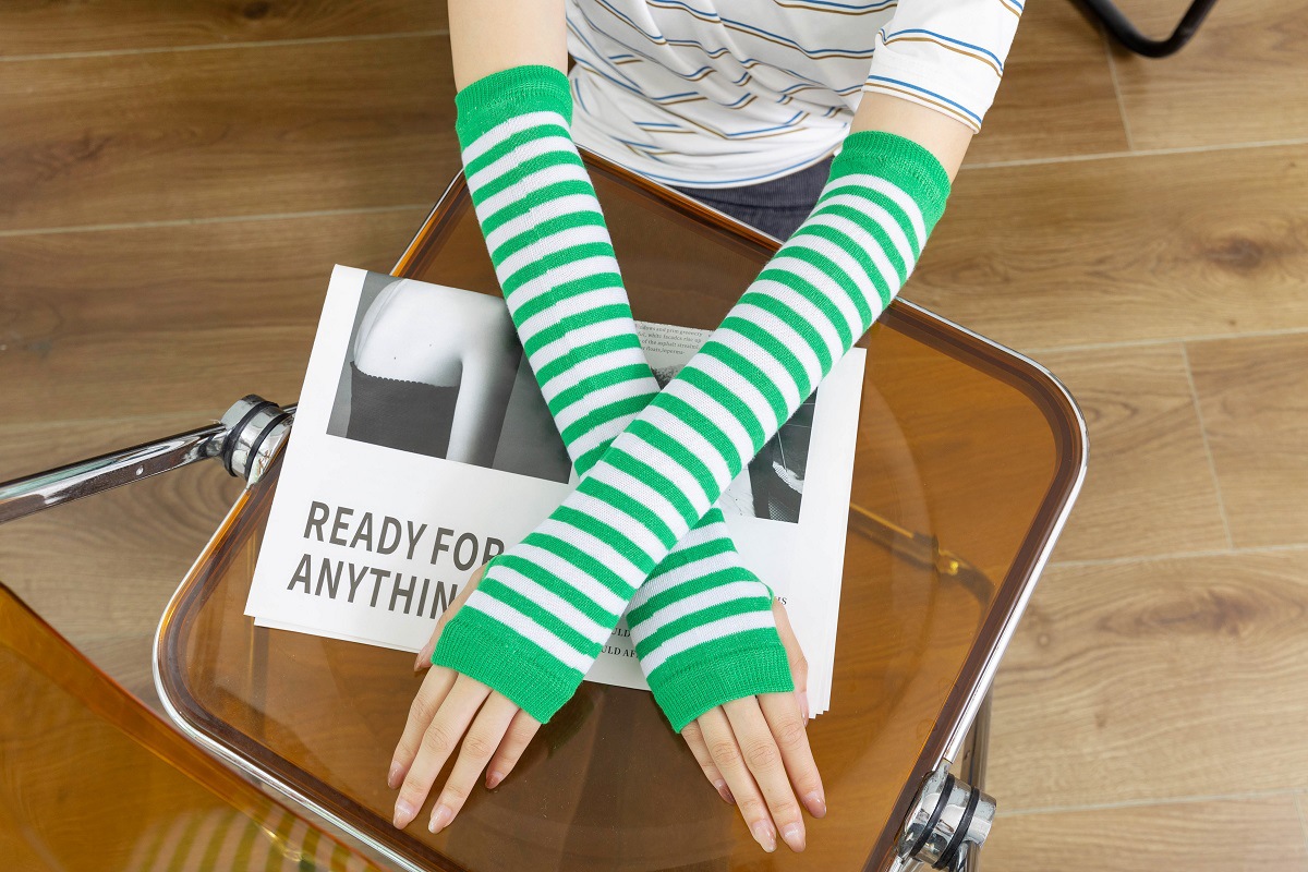 • 노란색과 녹색 줄무늬 장갑