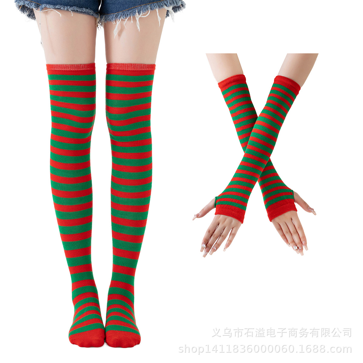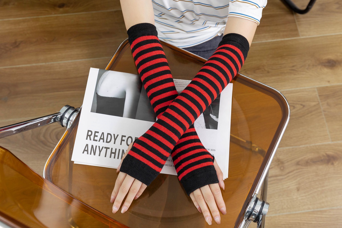 • 빨간색과 녹색 줄무늬 장갑