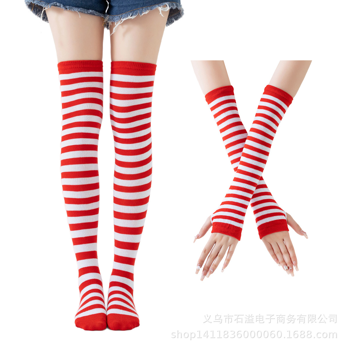 • 빨간색과 흰색 줄무늬 장갑