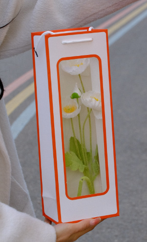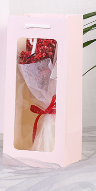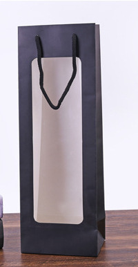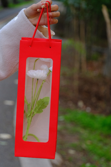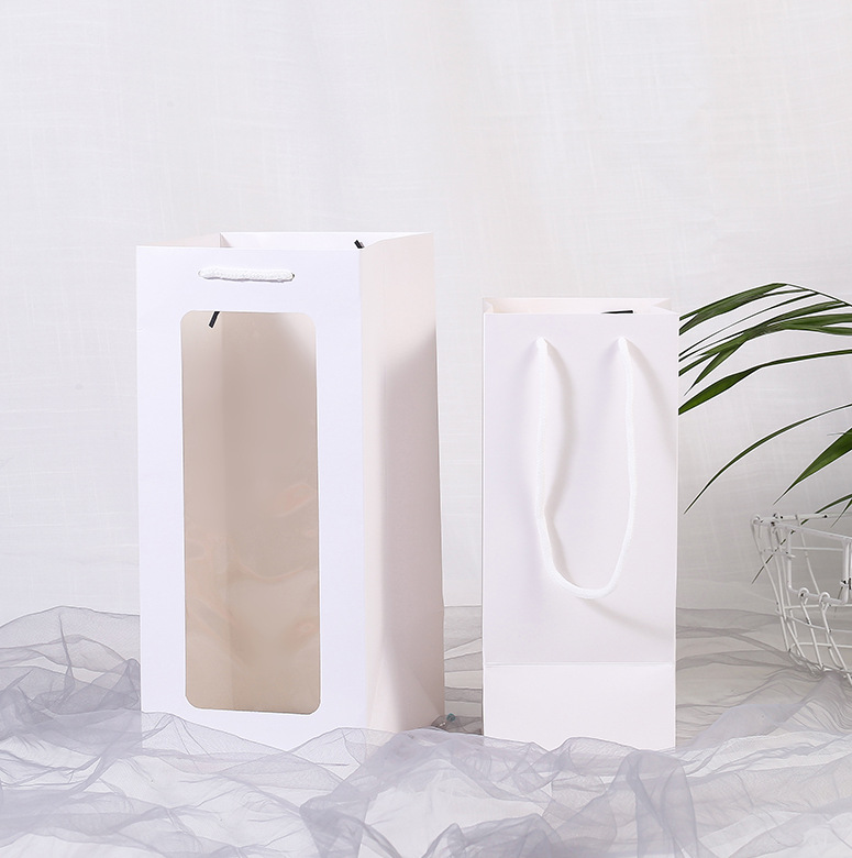 스팟 어머니의 날 단일 레드 와인 종이 가방 투명 창 와인 가방 직사각형 선물 가방 꽃 핸드백 도매