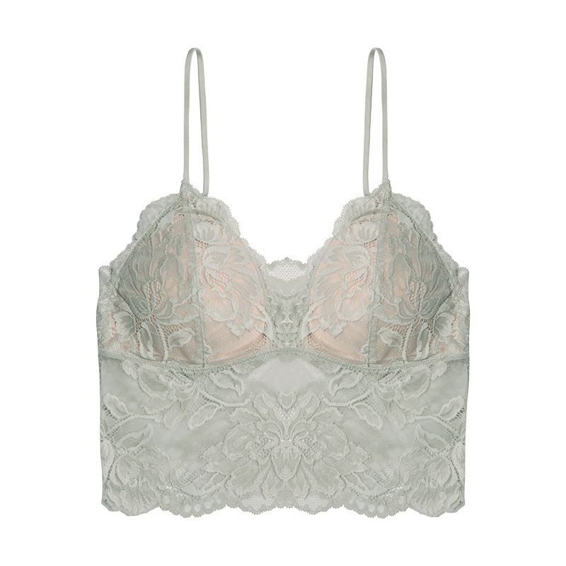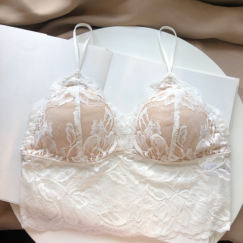 프렌치 레이스 끈 브라 세트, 와이어 없음, 얇은 속옷, 삼각 컵, 가슴 패드 포함, 순수한 매력 스타일스토어 가기