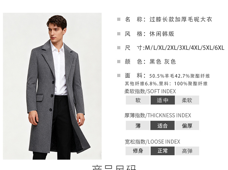 남성용 울 코트, 롱 기장, 무릎 아래까지 오는 스타일, 정장 칼라, 솜 안감, 두꺼운 울 코트, 재킷, 해외 수출 전용스토어 가기