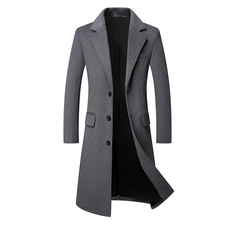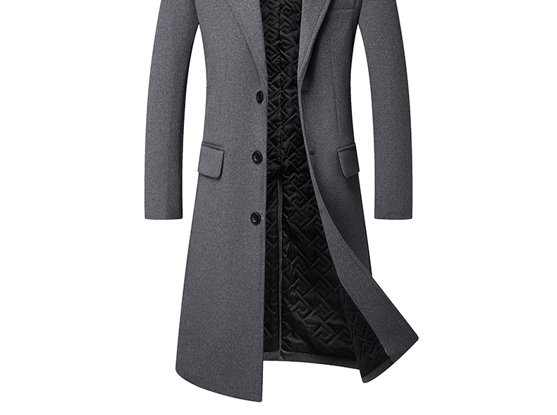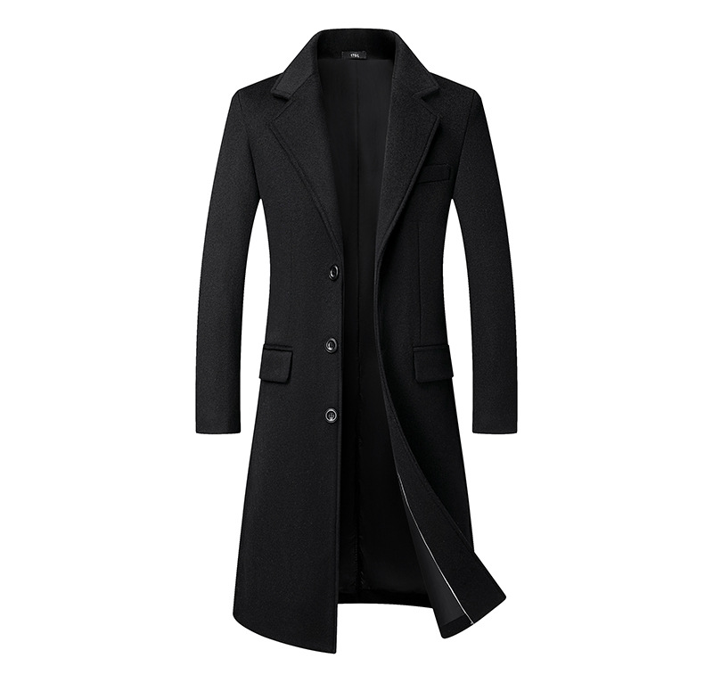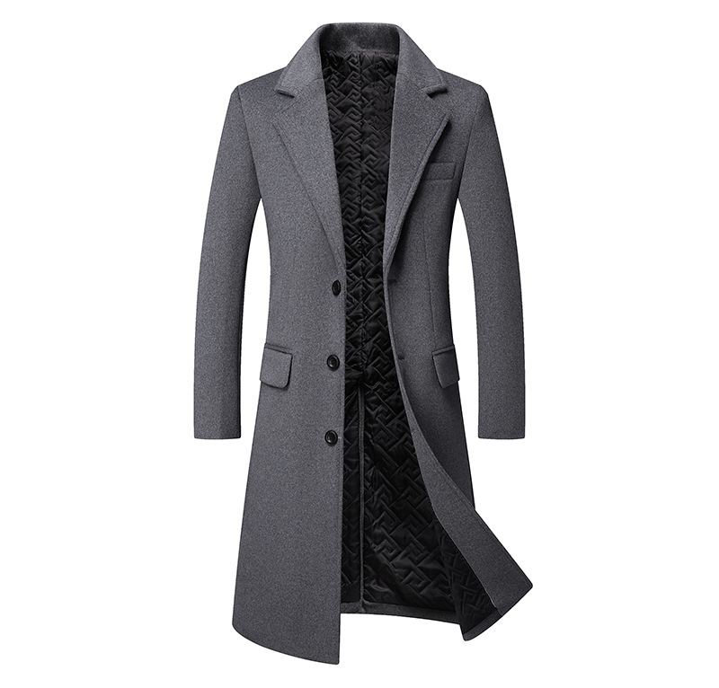 남성용 울 코트, 롱 기장, 무릎 아래까지 오는 스타일, 정장 칼라, 솜 안감, 두꺼운 울 코트, 재킷, 해외 수출 전용