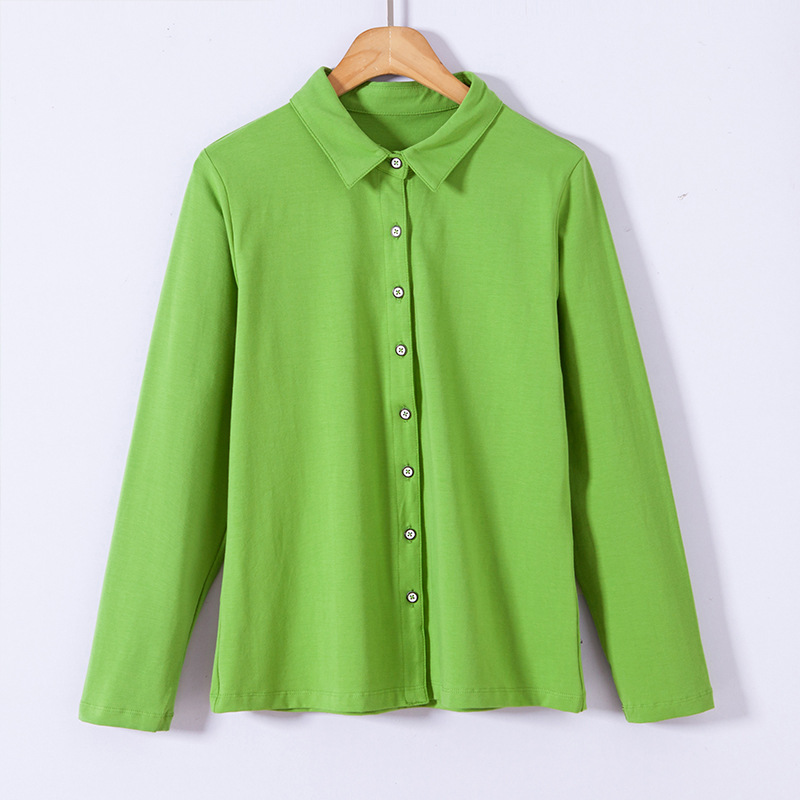 아보카도 그린 셔츠 2025 봄 긴팔 셔츠 여성용 면 탑 베이스 셔츠 원피스 2141-1