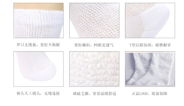 糖足用全棉袜医用康复护理松口袜脚底毛圈全棉吸湿防臭抗菌袜